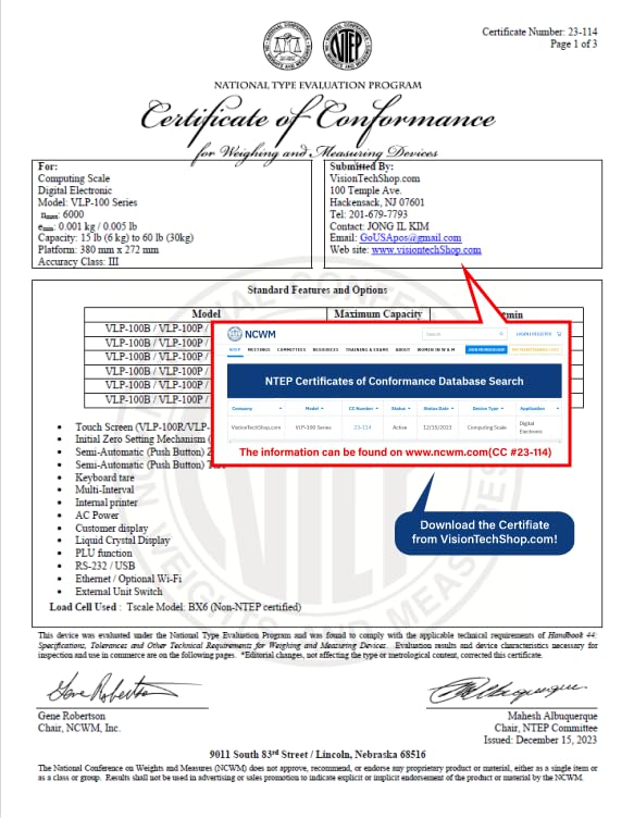 VisionTechShop VLP-100B Label Printing Scale, Capacity 30/60lb Readability 0.01/0.02lb, NTEP Legal for Trade