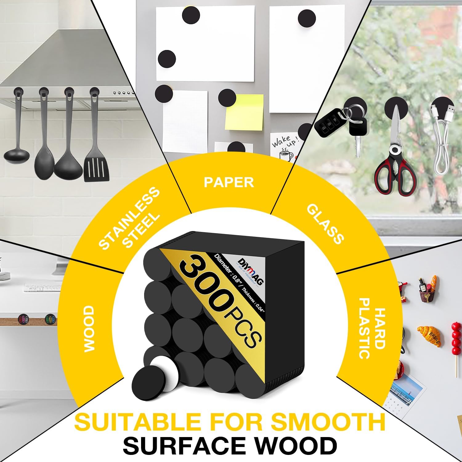 DIYMAG Magnets with Adhesive Backing, 300Pcs 0.8 x 0.04inch Round Small Magnetic Dots Stickers for Classroom Crafts Strong Magnetic Tape Sheets Easy Peel and Stick for Whiteboard Fridge