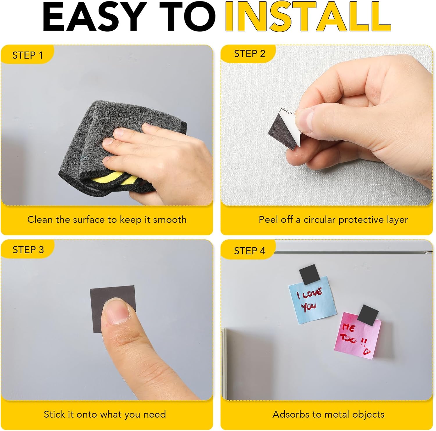- 【Magnetic Dots Set】300 Pcs magnetic dots with adhesive backing.Each square magnet measures 0.8 x 0.04 inches (20x1 mm), one side is sticky and the other side is a flexible magnet. You can use it on non-metallic materials, allowing you to stick anything you want