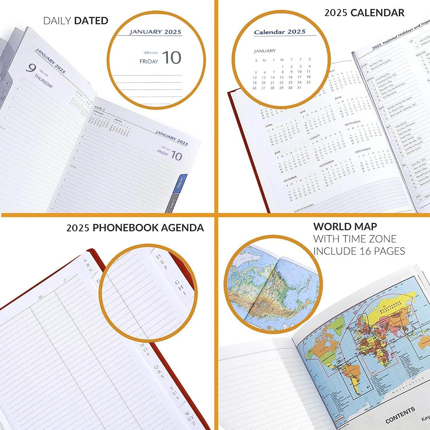 Daily Planner 2025 Page a Day – A5 Business Agenda 2025, Hourly Daily Planner 5x7, 365 Page Organizer with Monthly Tabs & Calendar, 2025 Diary for Men and Women (RED 2025)