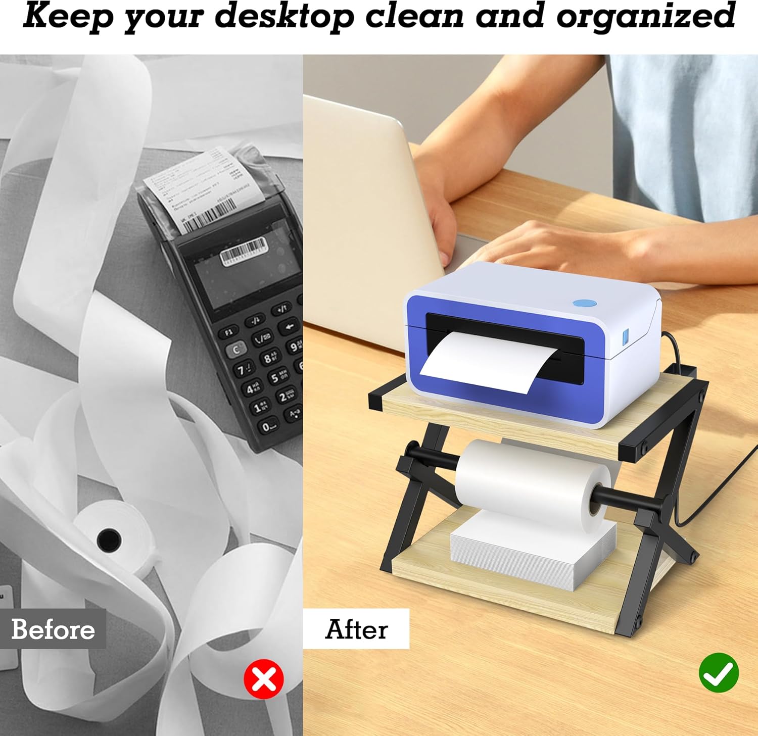 - 【Wide Range of Applications】The thermal printer label holder fits most thermal printers and holds desktop tools, hand tape, and hand tools. The holder's appearance complements any workspace, it is a essential for offices, warehouses, supermarkets, distribution and small businesses