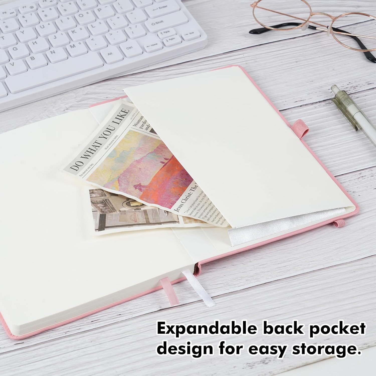 - 【Product Features】:This blank notebook contains a total of 160 pages/80 sheets, with an expansion pocket on the back with a pen holder and two bookmarks. 100gsm thick paper without ink leakage.