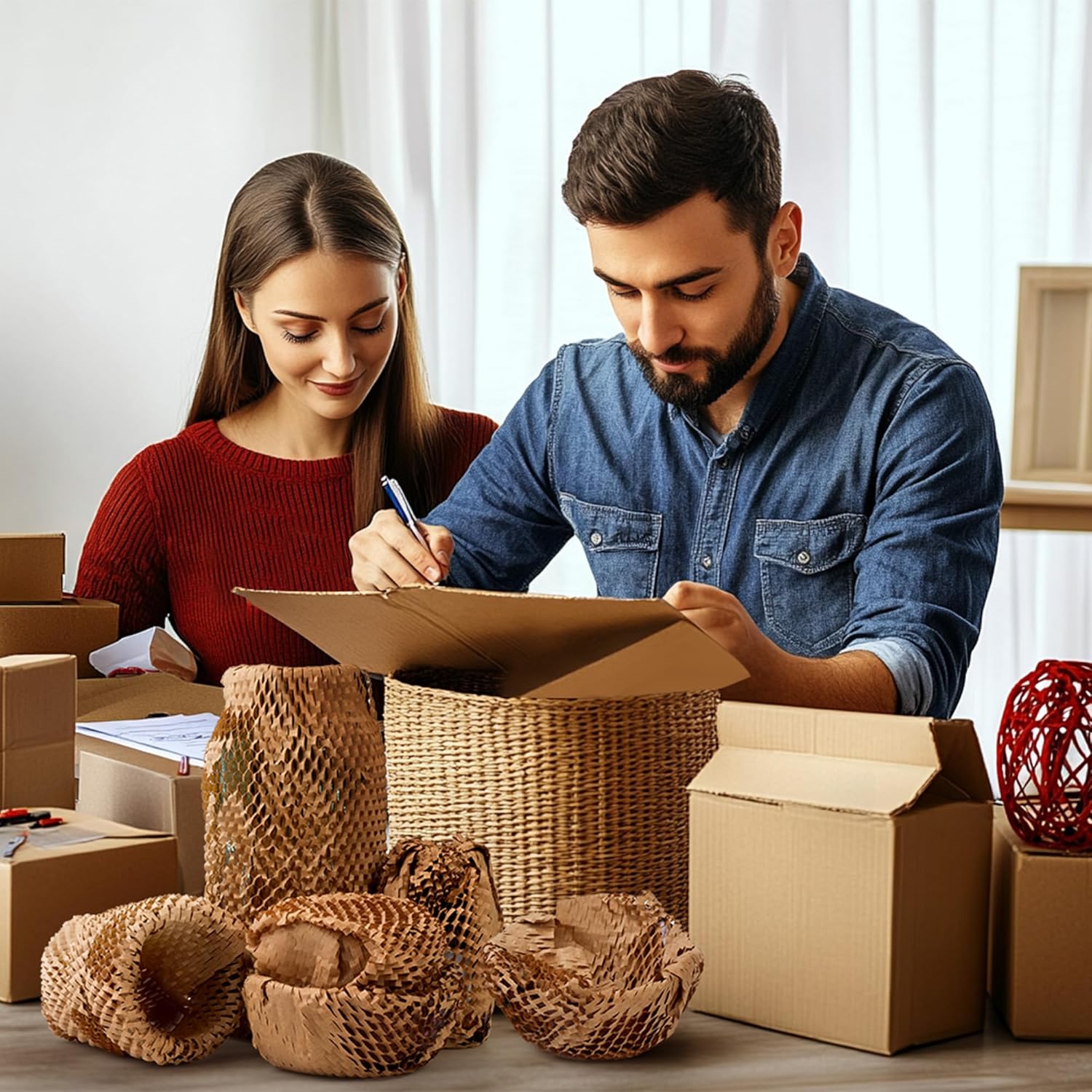 - 【Easy to Use】 The honeycomb wrapping paper does not require scissors or tape, and can be easily hand torn for use. Simply stretch the wrapper and wrap it directly around the item for a secure fit and reliable protection. Saving time and effort, even novices can finish packing quickly