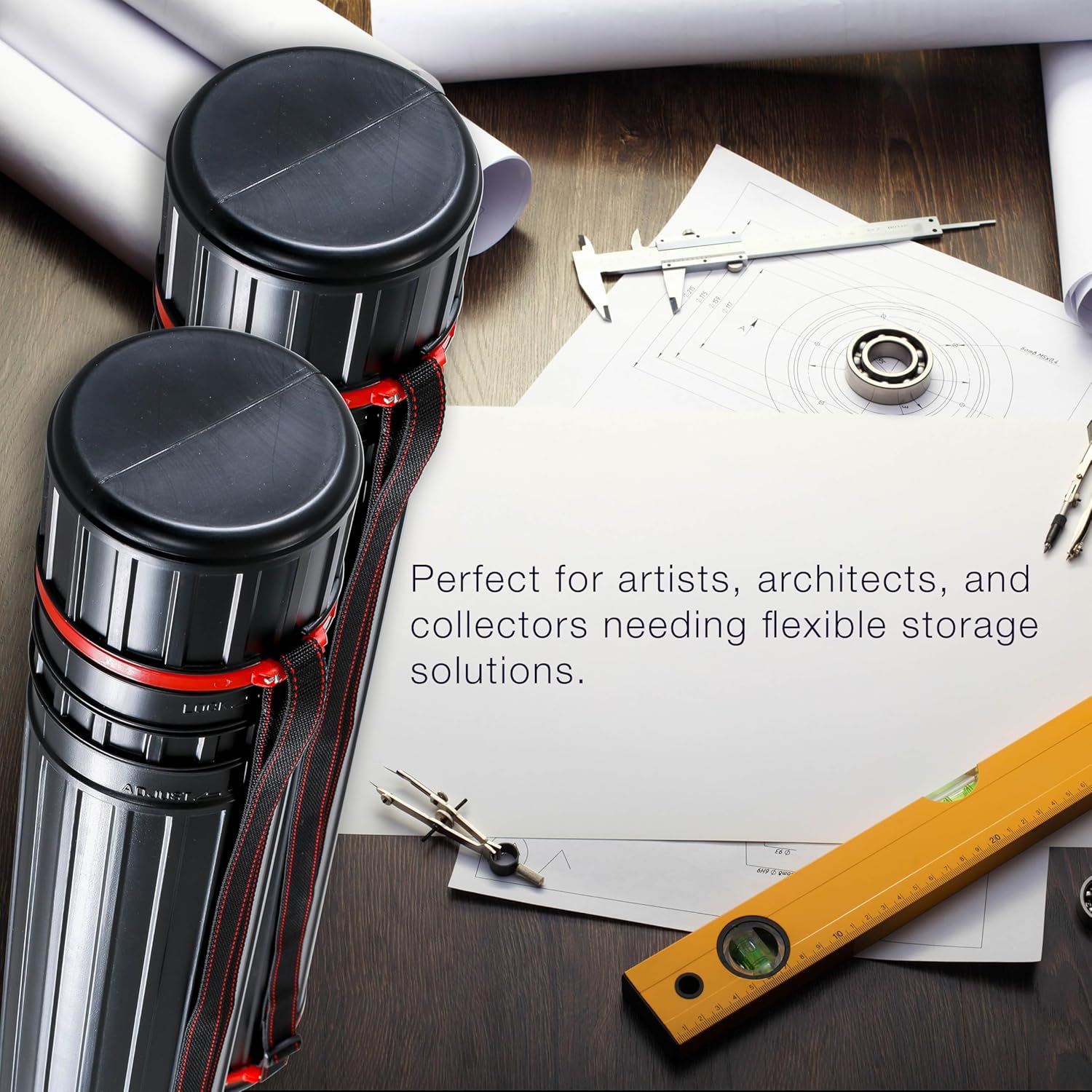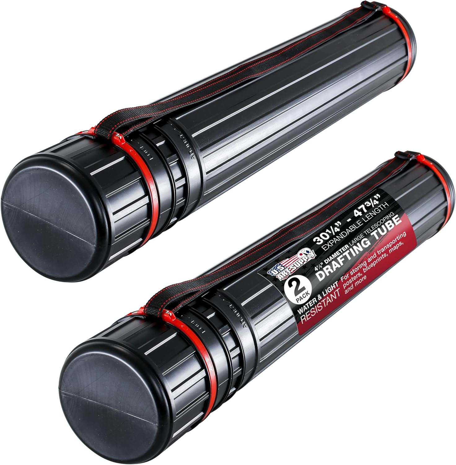 - Versatile and Expandable: (Pack of 2) - This large telescoping drafting poster tube expands from 30-1/4" to 47-3/4", with a 4-7/8" Outside & 4-1/2" inside diameter, making it ideal for storing and transporting posters, blueprints, maps, and more. It's perfect for artists, architects, and collectors needing flexible storage solutions.