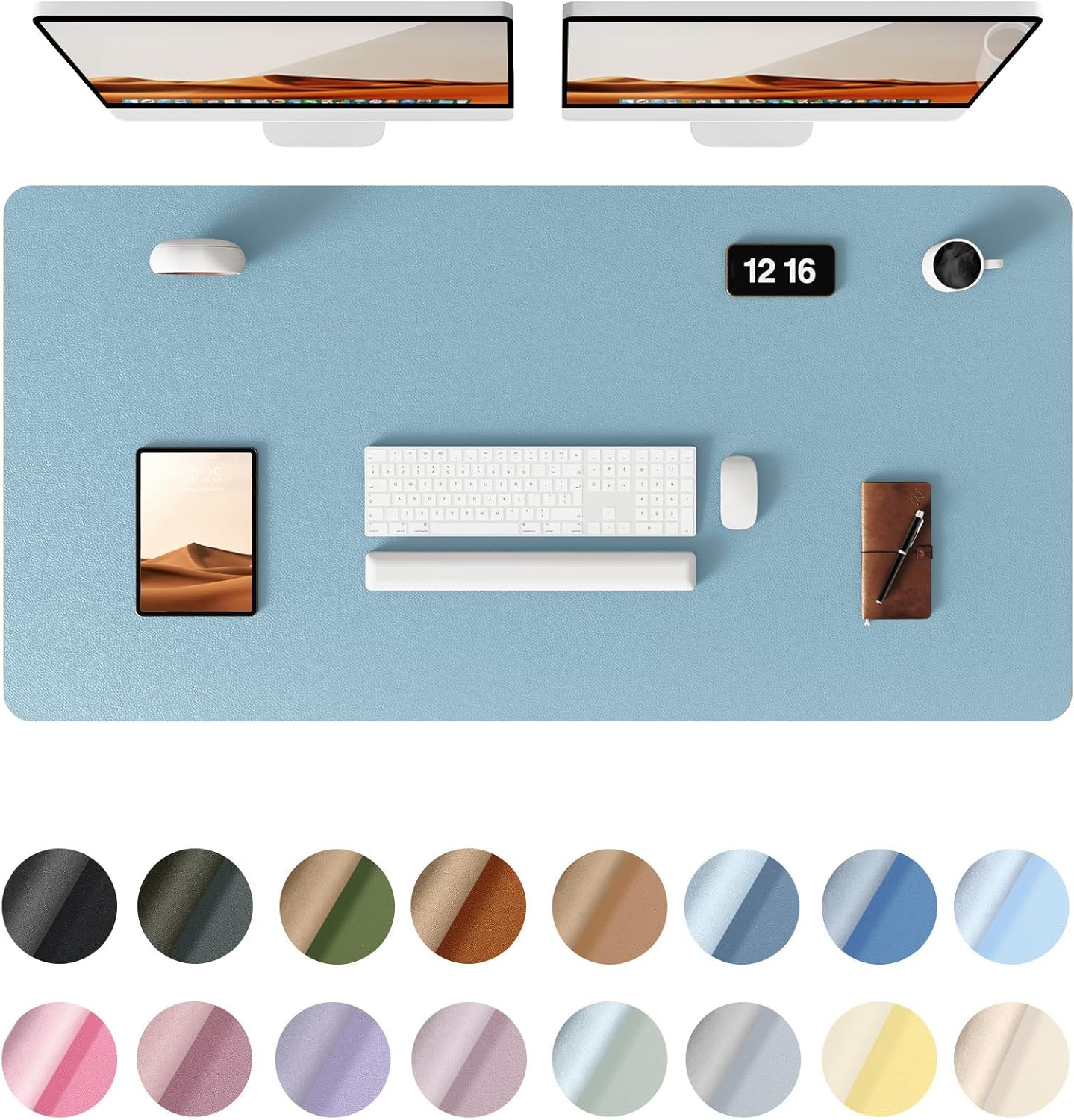 YSAGi Leather Desk Protector, Office Mat, Large Mouse Mat, Non-Slip PU Leather Blotter, Laptop Pad, Waterproof Writing Pad for Office and Home (Ice Blue, 47.2" x 23.6")