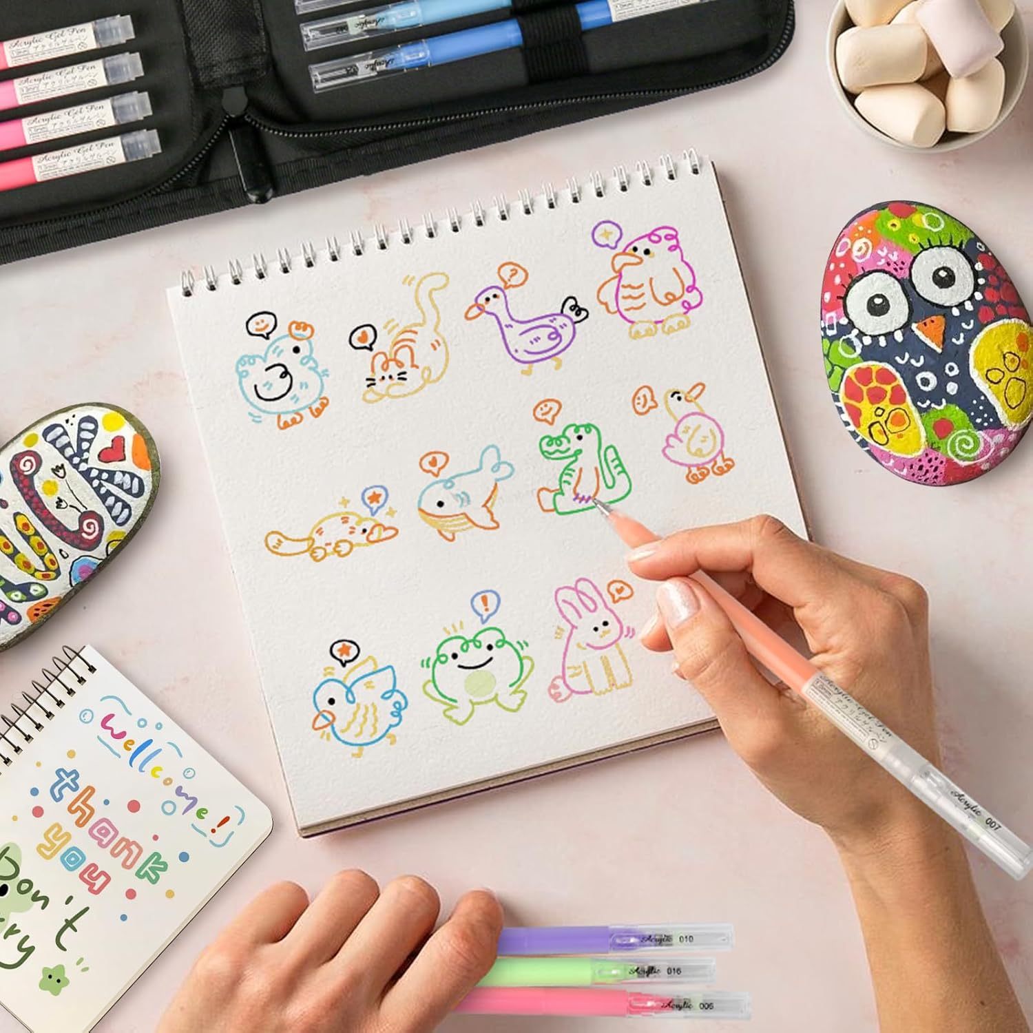 - [ABUNDANT COLOR CHOICE]: We offer a exquisite canvas case, a coloring book and 24 pack acrylic neutral pen. crylic ink is highly lightfast, meaning it does not fade easily, making it suitable for artworks that will be displayed for a long time.