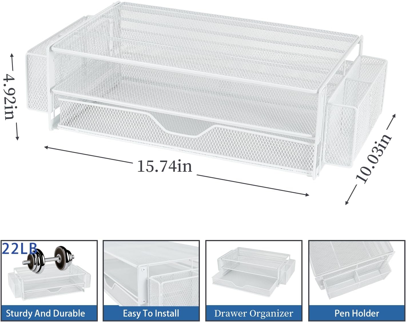 - Space Saving: Our dual-tier desktop organizer with drawer and 2 pen holders stores office supplies and office desk accessories neatly. As a purpose monitor riser, it keeps your workspace organized, helping you focus and work efficiently