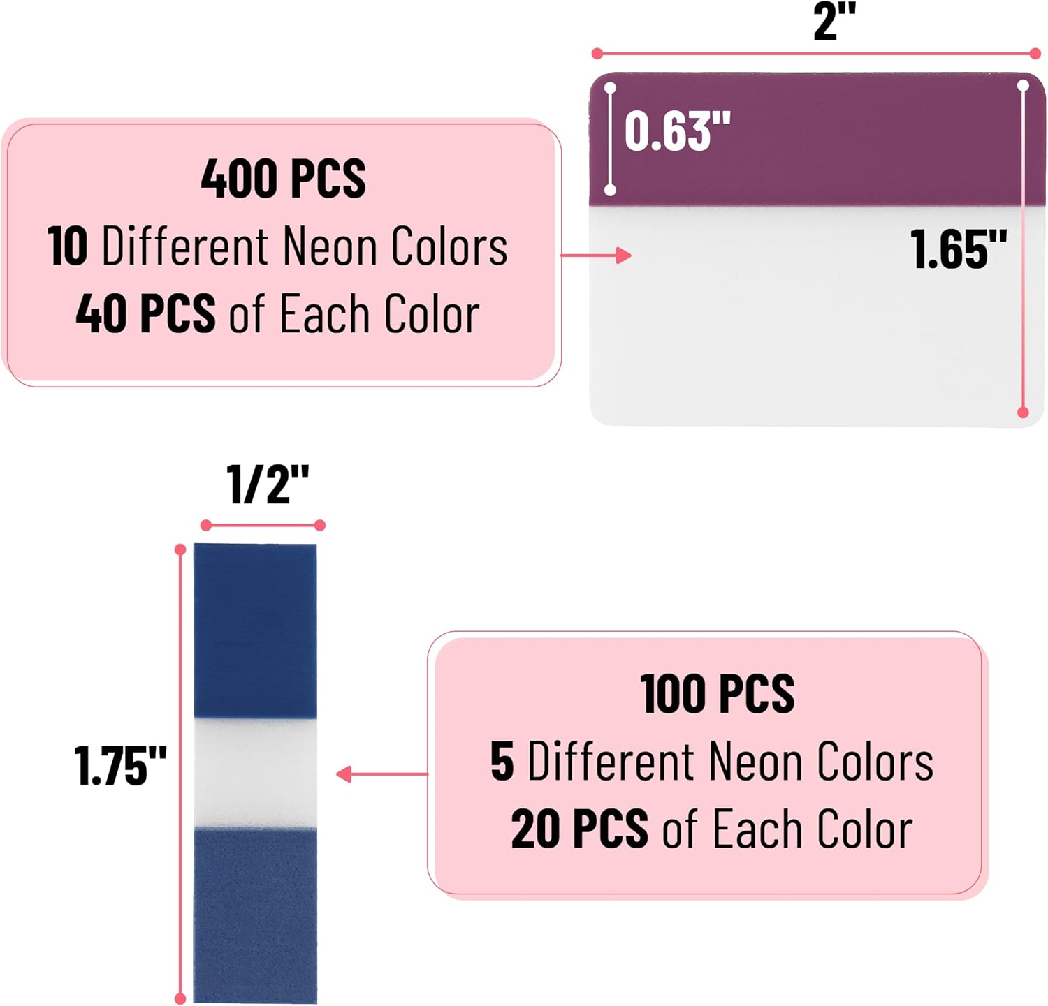 Mr. Pen- Colorful Index Tabs, 500 Pcs, 21 Sets - Sticky Page Markers for Binders, Books & Notebooks