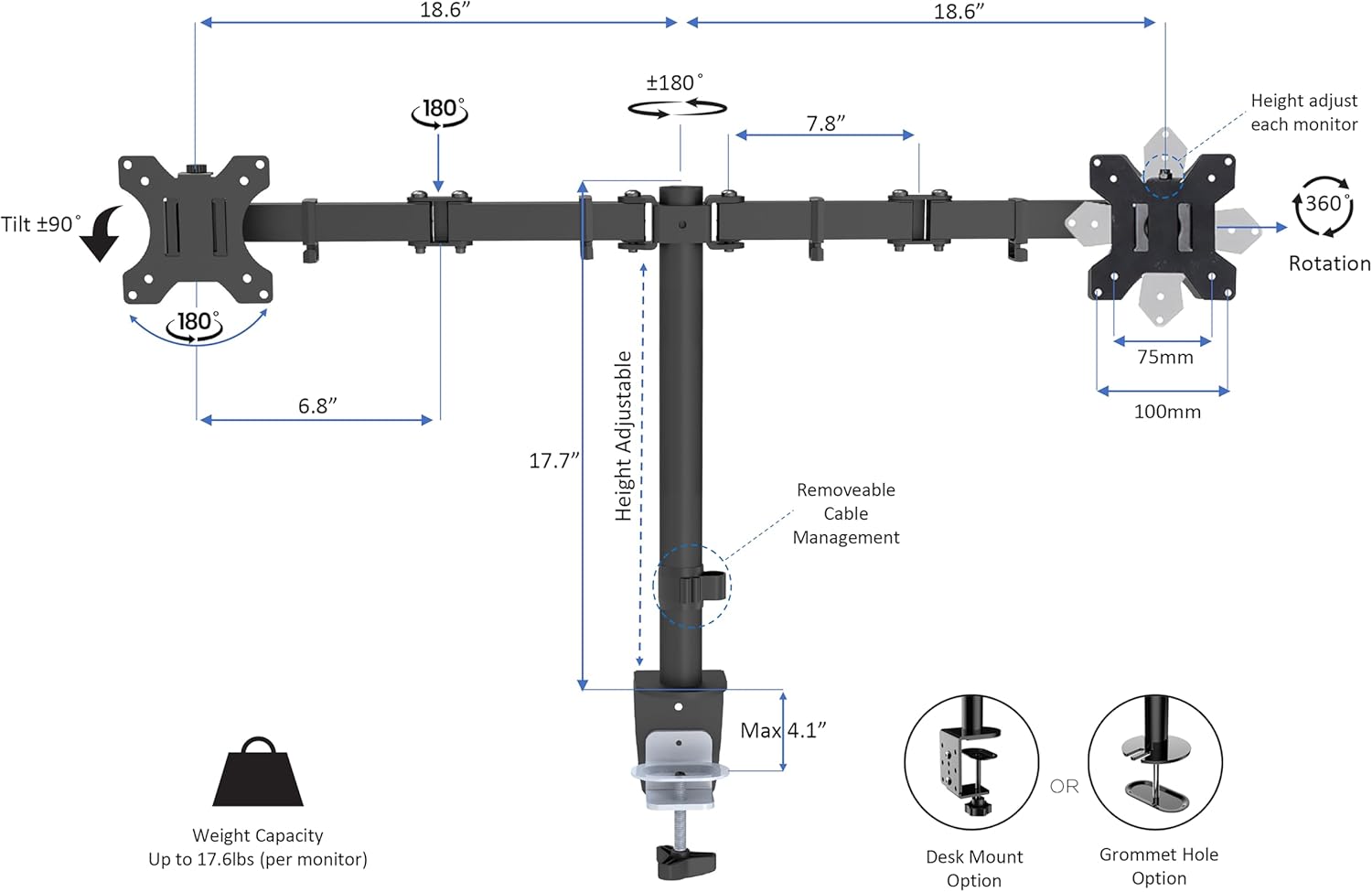 - ELECTRIC Standing desk converter computer workstation bundle - includes R EDRB-46 Electric Desk Riser, R DM2 Dual Monitor Arm and a conveniently placed 10.5" wide tablet or phone slot, for even more convenience and functionality