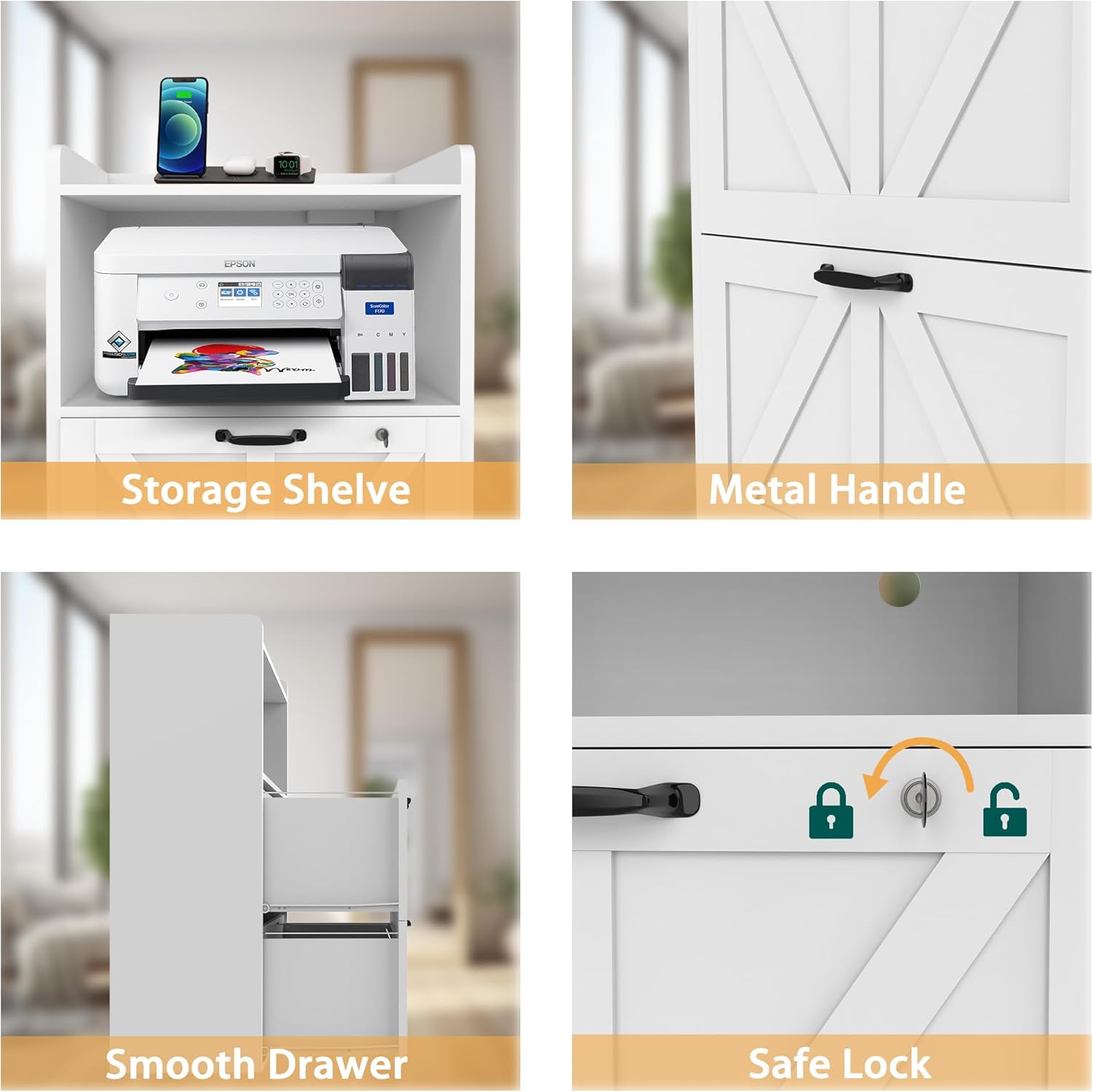 - ăLarge storage cabinetăDimensions: 24''L*15.6''W*38.4''H, with 2 large wooden drawers, 1 open storage shelf & 1 wooden desktop which weight capacity of 150 lbs. You can also use it as a printer stand to save space. The file cabinet with lock provides added privacy and security for your personal items.