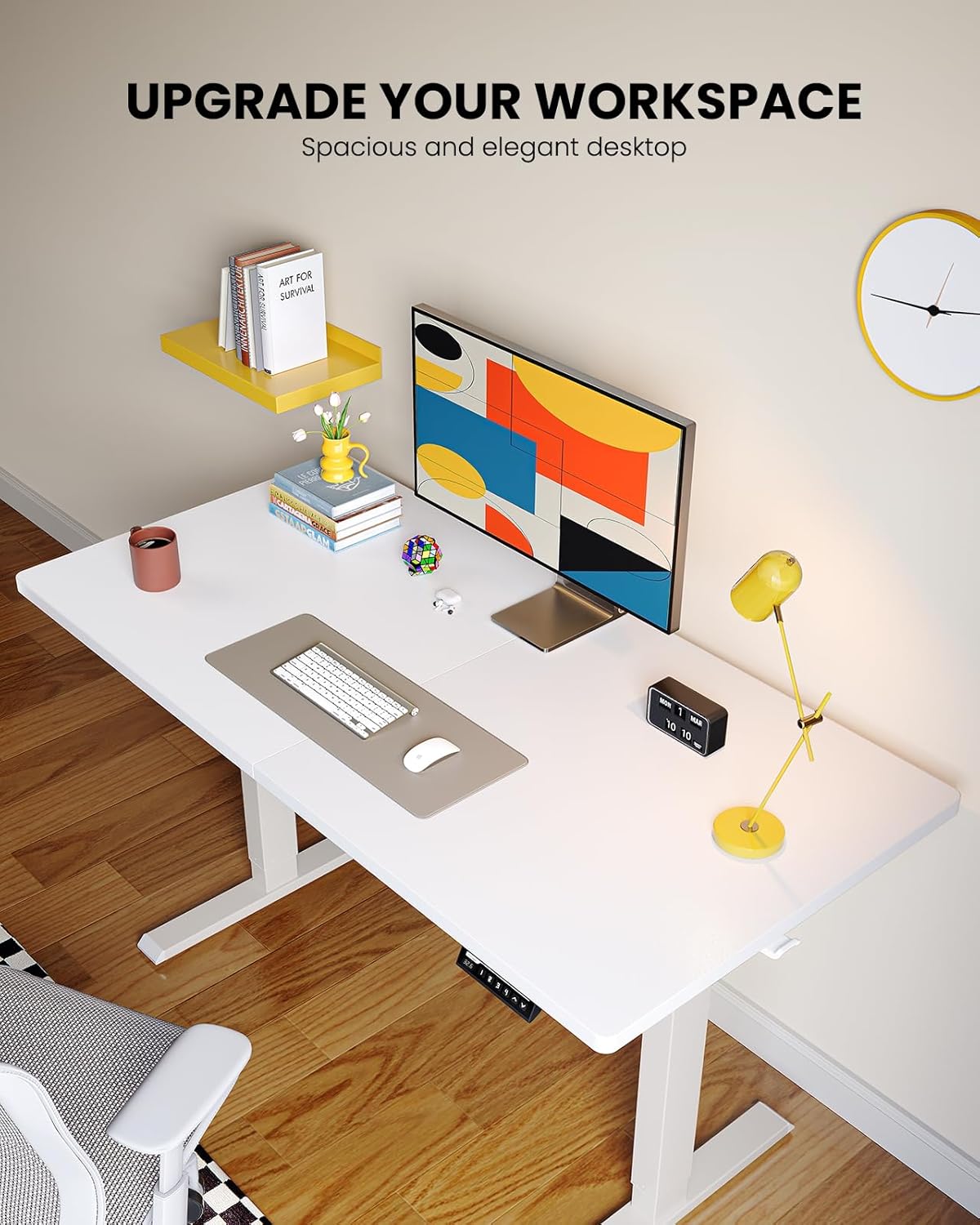 ErGear Electric Standing Desk, 48 x 24 inch Height Adjustable Sit Stand Up Desk, Computer Home Office Desk with 4 Memory Height Buttons, Two Pieces Desktop, White, EGESD110W