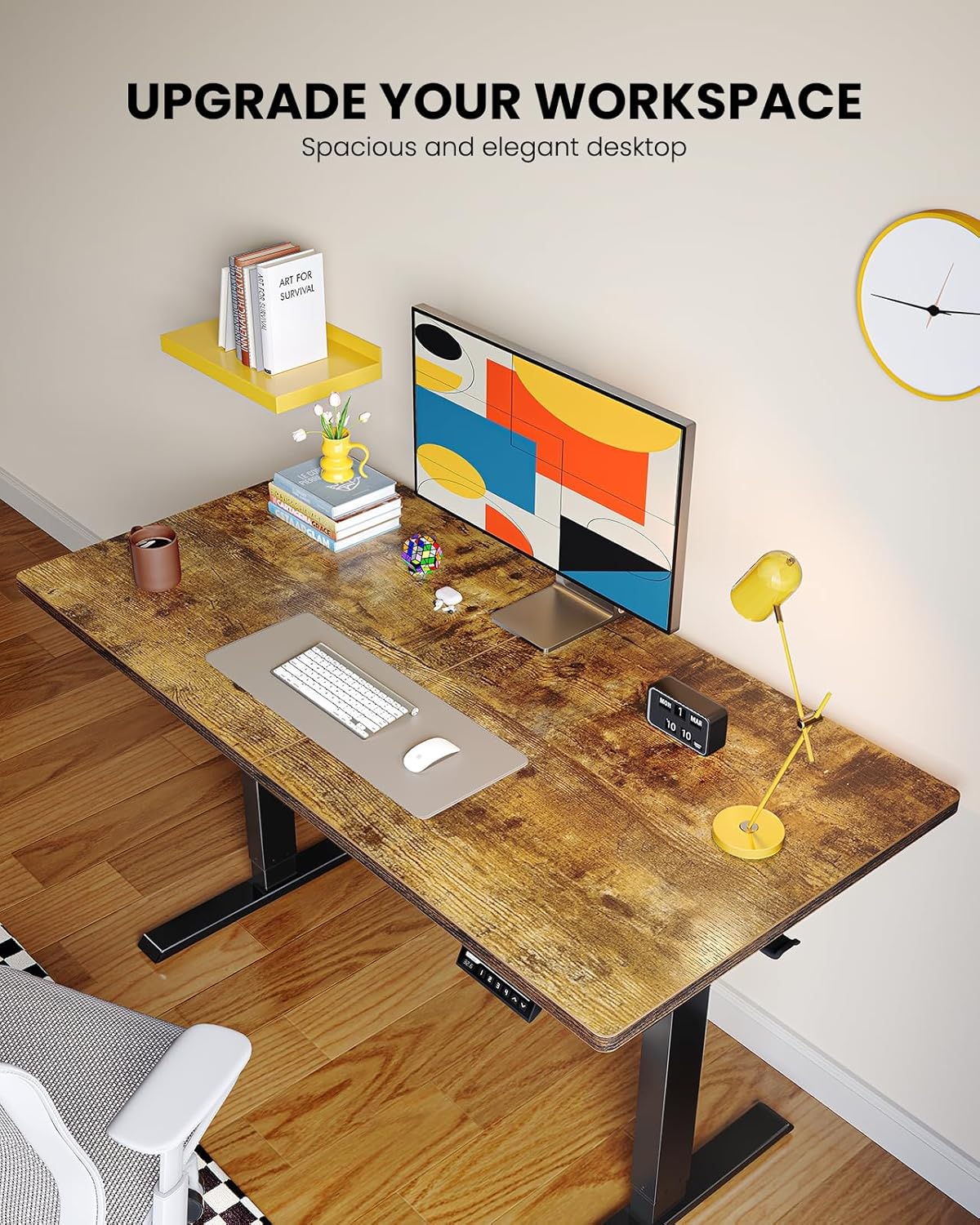 - Upgrade your Workspace: The spacious 47.24″ x 23.62″ surface of this rising desk provides plenty of room to arrange monitors and a laptop along with your keyboard and mouse on top. Available in a range of colors and sizes, you can choose the perfect computer desk dimensions to fit your office setup.