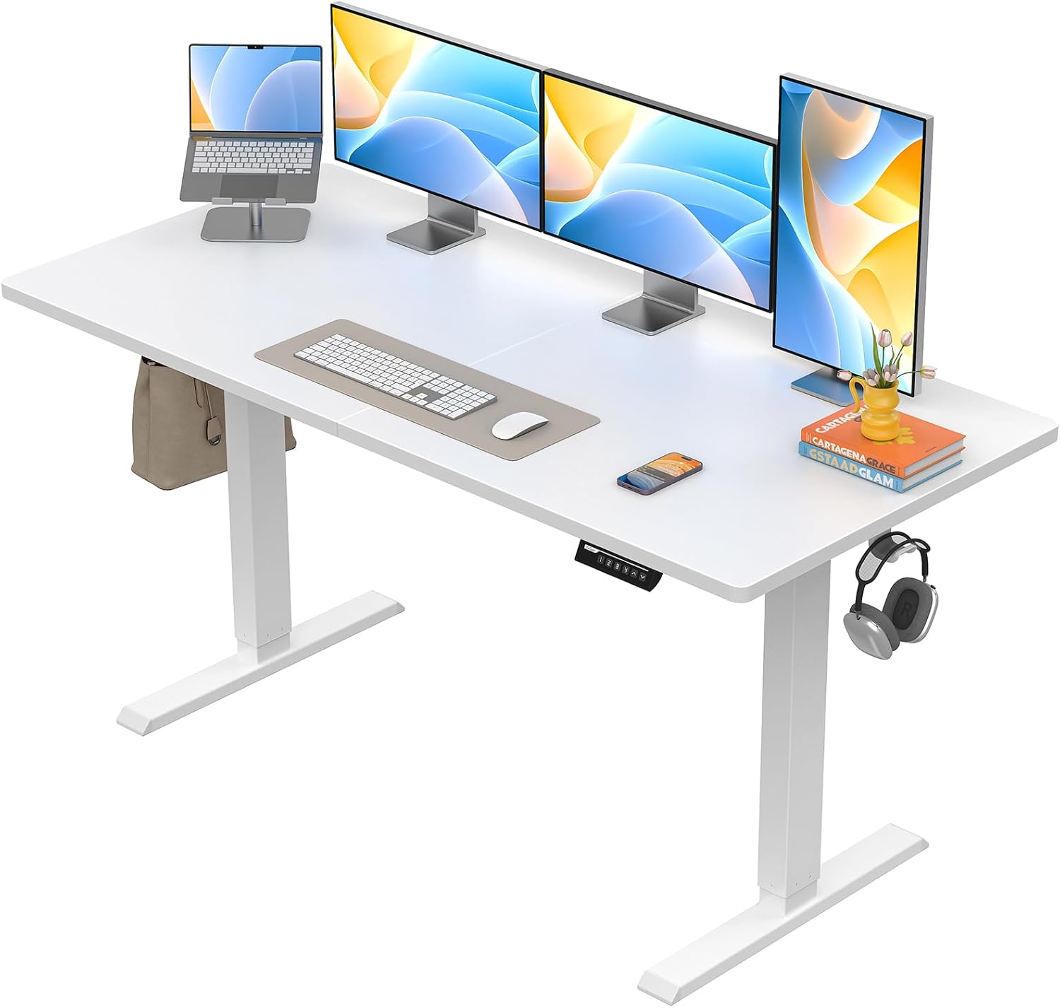 - Upgrade your Workspace: The spacious 55″ x 27.6″ surface of this rising desk provides plenty of room to arrange monitors and a laptop along with your keyboard and mouse on top. Available in a range of colors and sizes, you can choose the perfect computer desk dimensions to fit your office setup.