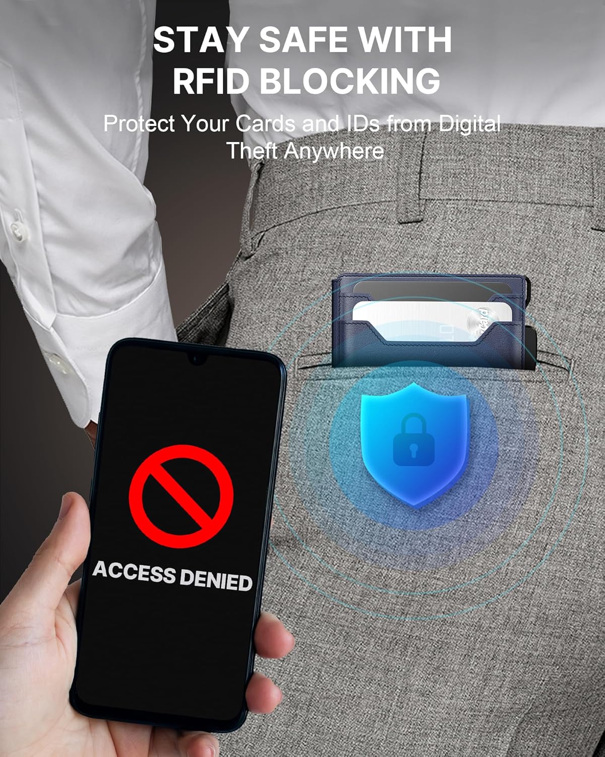 - RFID Protection: Protect your cards and personal information with advanced RFID blocking technology, effectively blocking the 13.56 MHz frequency. This ensures that your cards are protected from unauthorized scanning.