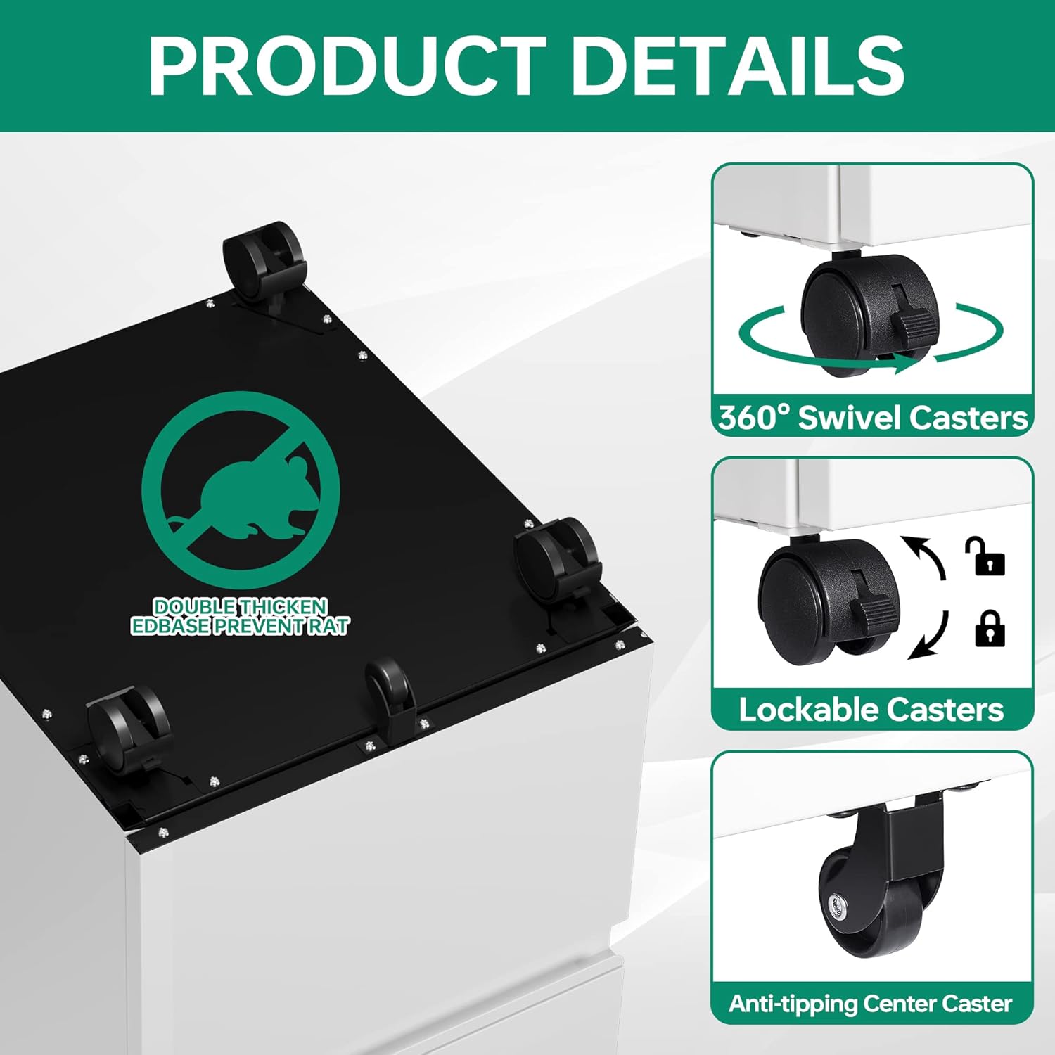 Letaya 2 Drawer Mobile File Cabinet with Lock,Under Desk Metal Filing Cabinets for Home Office Organizer Letters/Legal/A4(White-Requires Installation)