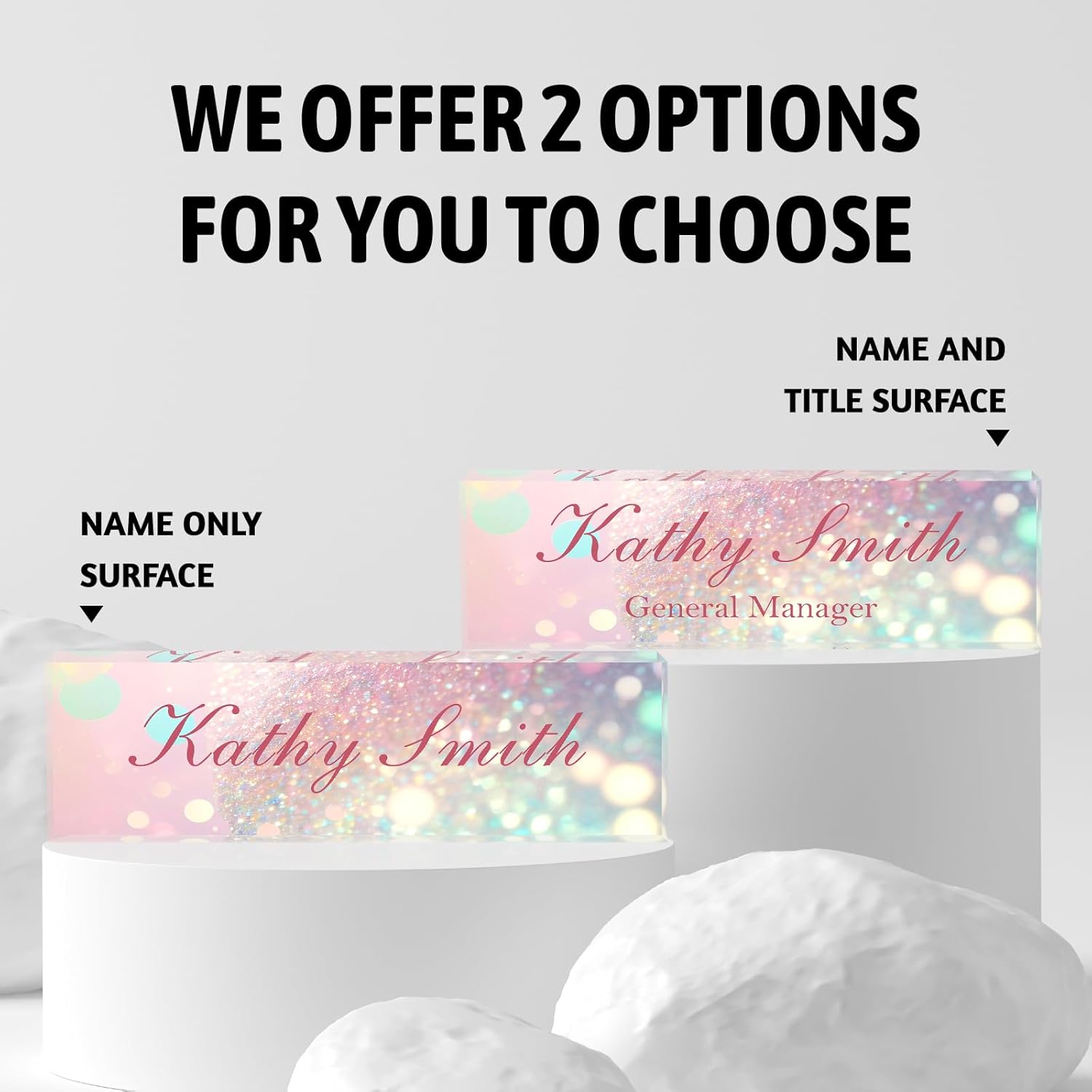 • 【Premium Acrylic Materials】:We use high-quality transparent and environmentally friendly acrylic blocks to make custom name plates, and use the most advanced HD printing technology and super strong adhesives to make the name plate content clear and never fall off. And because of its sturdy and durable characteristics, the acrylic name plates can become a permanent desk decoration.