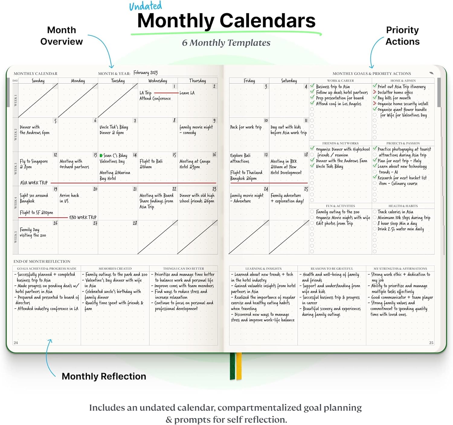 Roterunner 2025 B5 Pink Softcover Purpose Planner Notebook 7.5'x9.8' Undated Planner Daily Weekly Monthly Productivity Goal Setting Tool for Work Home ADHD Adults Self Care Journal