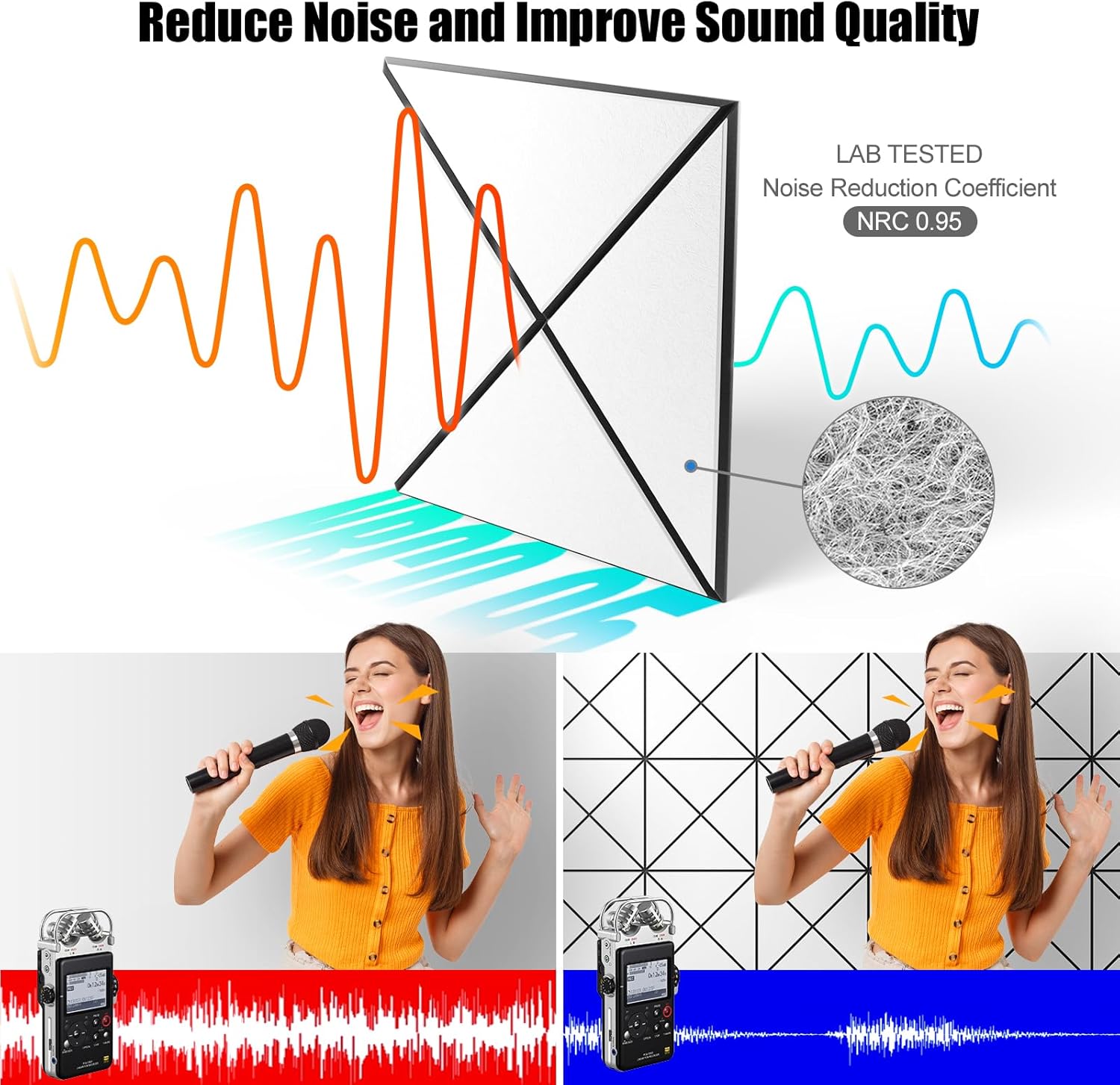 - [Superior Soundproofing]: Sonicism acoustic panels feature porous structure and boast a high density of 9.4 lb/ft³ and an impressive NRC of 0.95. Wider coverage of these acoustic foam panels can effectively absorb unwanted sounds, reduce standing wave, reverb and flutter echoes for clearer sound quality