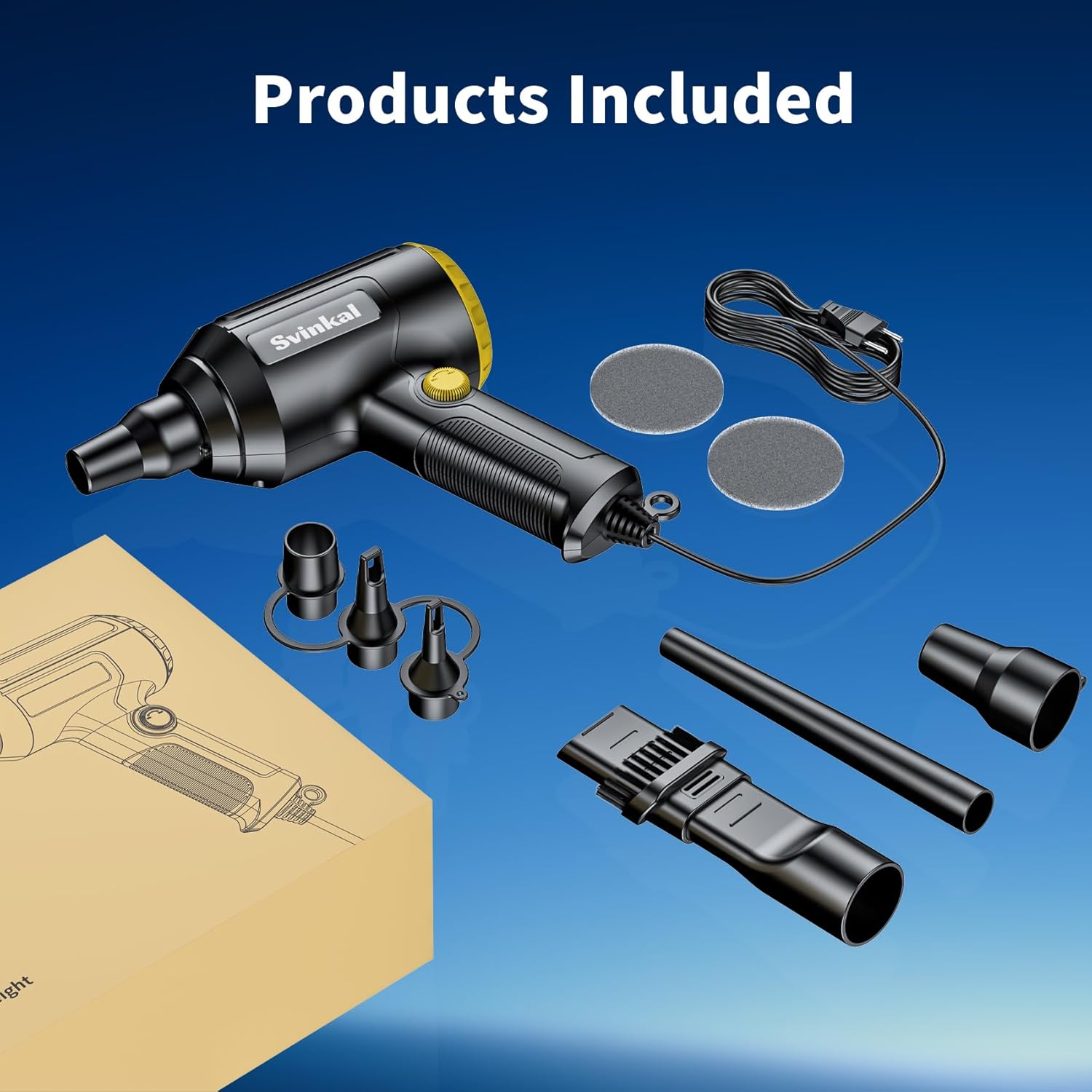 - The air duster has a【gun-shaped design】 that is non-slip and easy to grip. Anti-folding cable protection buckle can effectively protect the cable. Comes with a round hanging loop for easy storage on a hook. Includes two air filters that can be easily removed from the unit for replacement