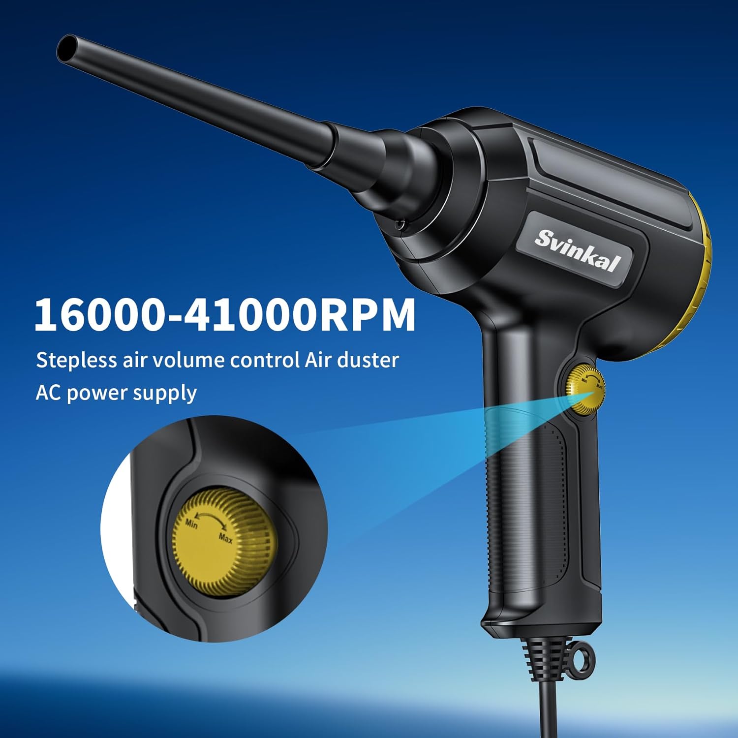 - The 【AC-powered】model provides up to 15 minutes of continuous use and comes with a 3m cable, eliminating the need to dispose of or run out of batteries, and the need to purchase compressed air tanks on a regular basis