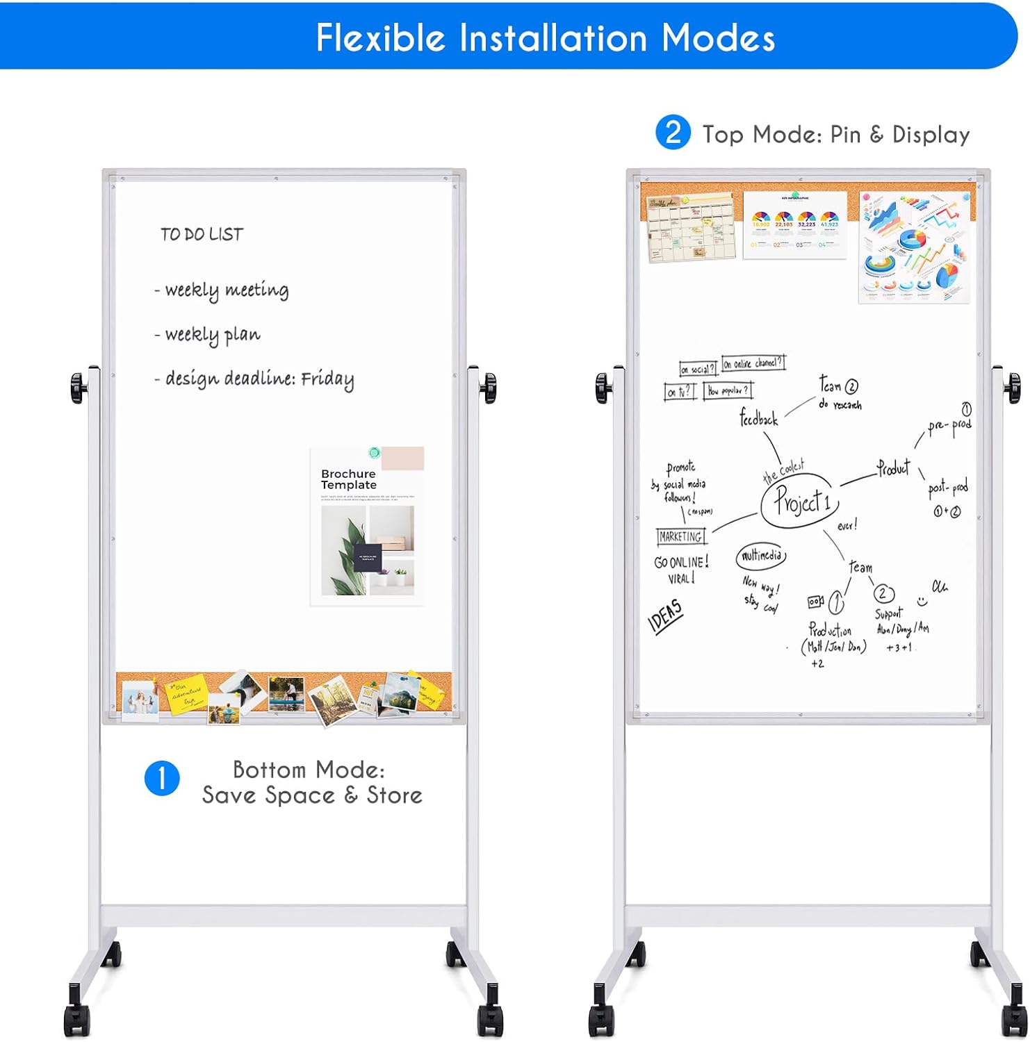 - Double-sided&Cork Combo: Doubles your writing space and perfect for separating information and organizing your thoughts.The strong magnetism and thick cork board enable you to pin or adsorb various documents as desired, catering to a wide range of needs including teaching, working, drawing, presentations