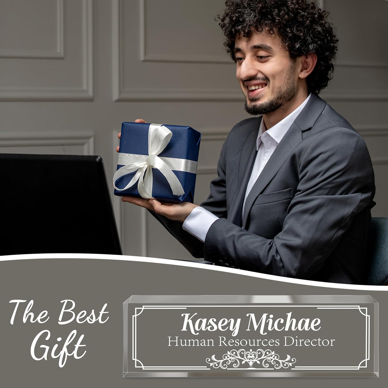 - 【Boss Day Appreciation Gift】 Customized desk name plates are a memorable and unique Boss Day gift. It is an ideal way to express appreciation to coworkers, managers, supervisors, bosses, etc. Perfect for promotions, employee recognition, Boss Day, Nurses Week, Teachers Day, and more. This thoughtful gift shows your care and appreciation and comes with a charming gift box and gift-wrapping service to make it even more special. Perfect as boss day gifts