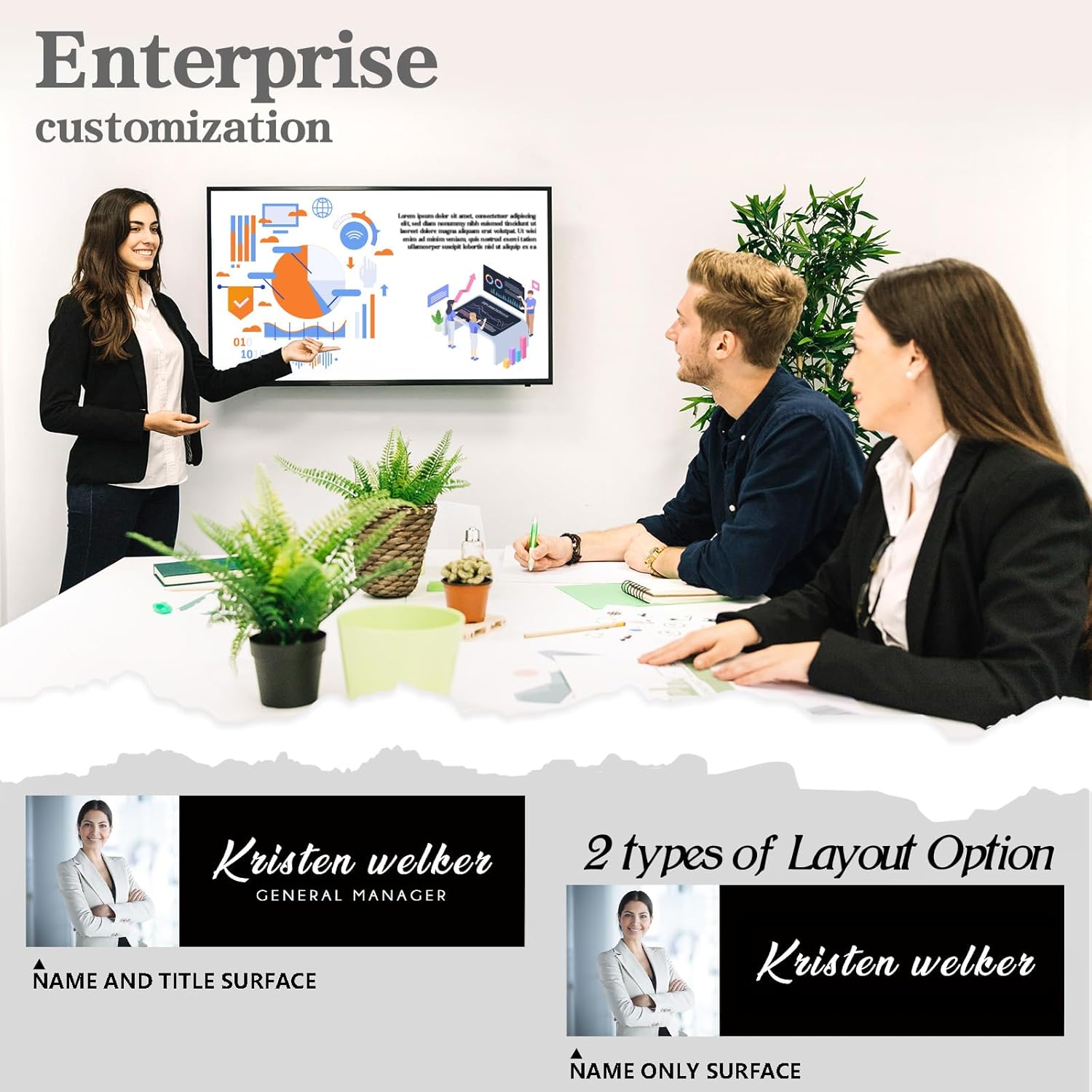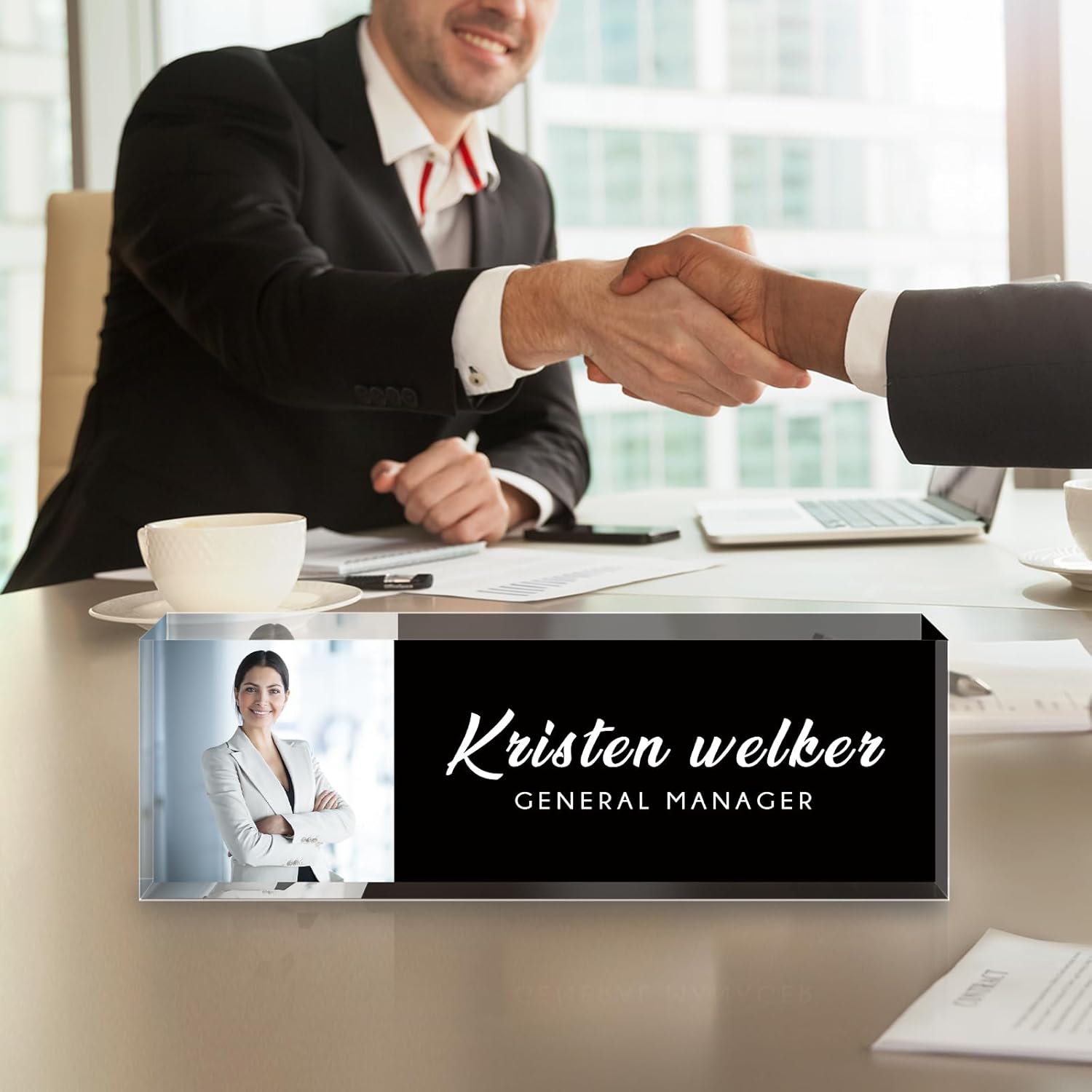 - 【Personalized Name Plate for Desk】Create a unique desk name plates in just four easy steps. We craft bespoke nameplates featuring your name and title, with options to choose your preferred style, design, and front. You can even upload your photo and logo for a truly personalized nameplate. Our talented design team is dedicated to bringing your vision to life. Elevate your office with a professional and unique nameplate that reflects your style.
