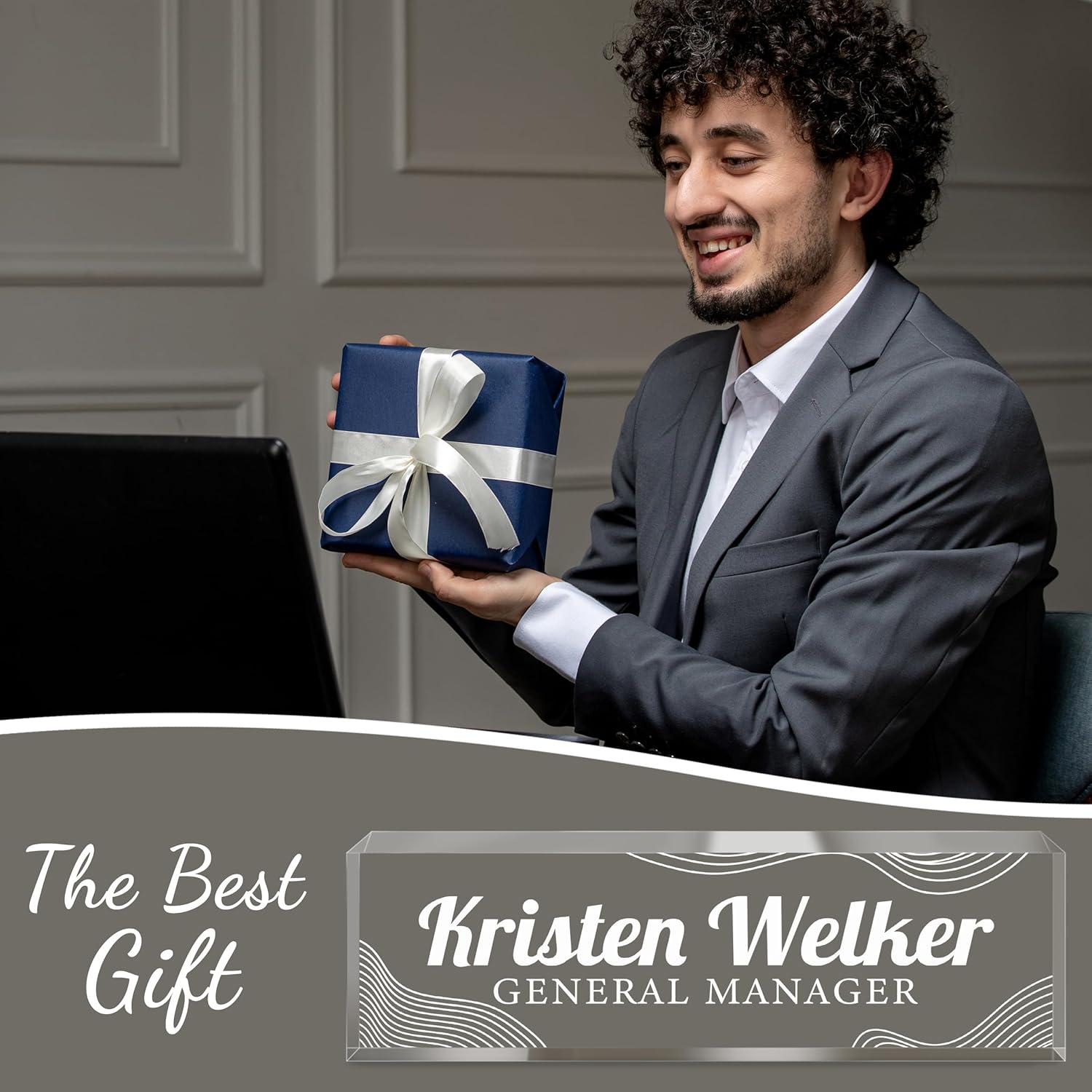 - 【Boss Day Appreciation Gift】 Customized desk name plates are a memorable and unique Boss Day gift. It is an ideal way to express appreciation to coworkers, managers, supervisors, bosses, etc. Perfect for promotions, employee recognition, Boss Day, Nurses Week, Teachers Day, and more. This thoughtful gift shows your care and appreciation and comes with a charming gift box and gift-wrapping service to make it even more special. Perfect as boss day gifts