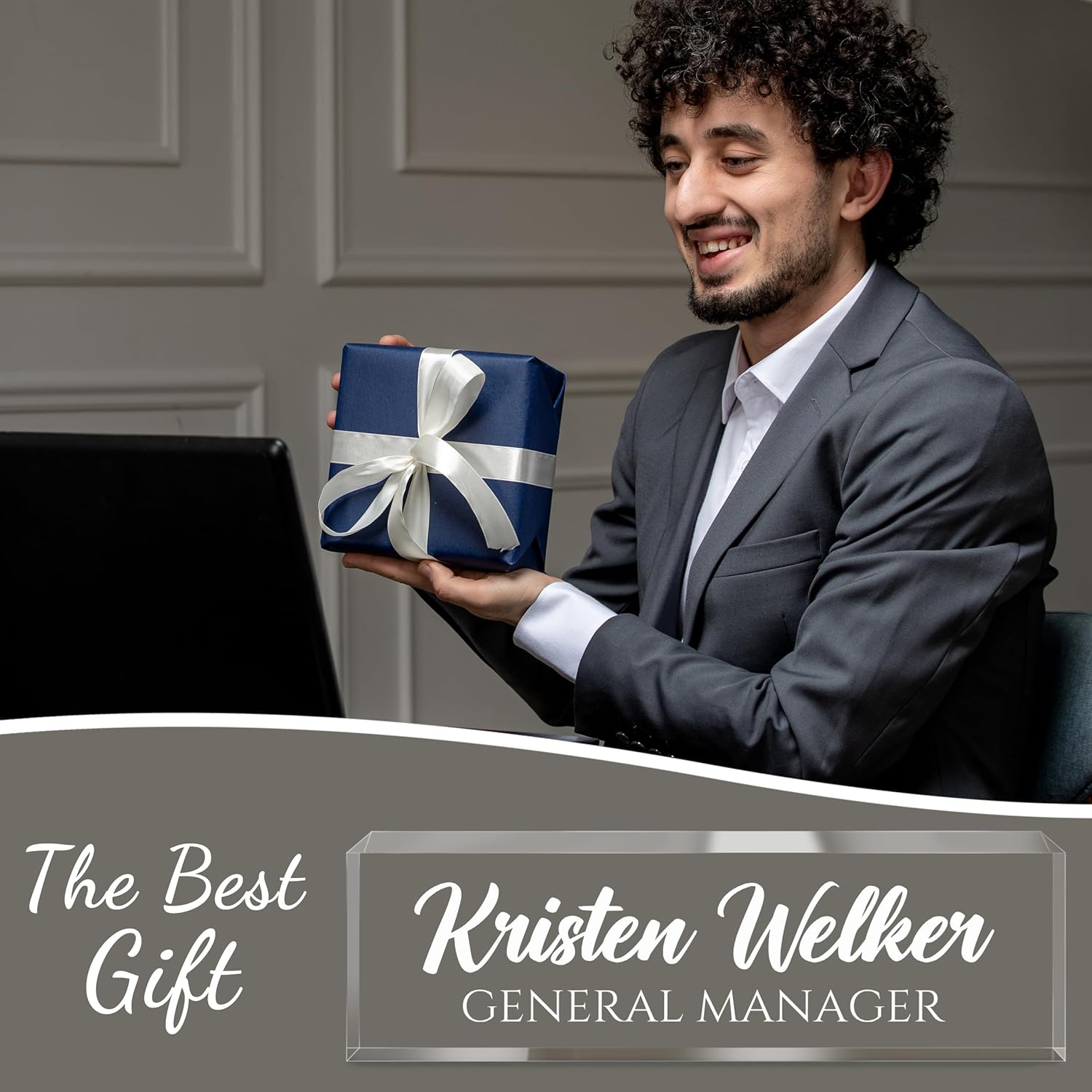 - 【Boss Day Appreciation Gift】 Customized desk name plates are a memorable and unique Boss Day gift. It is an ideal way to express appreciation to coworkers, managers, supervisors, bosses, etc. Perfect for promotions, employee recognition, Boss Day, Nurses Week, Teachers Day, and more. This thoughtful gift shows your care and appreciation and comes with a charming gift box and gift-wrapping service to make it even more special. Perfect as boss day gifts