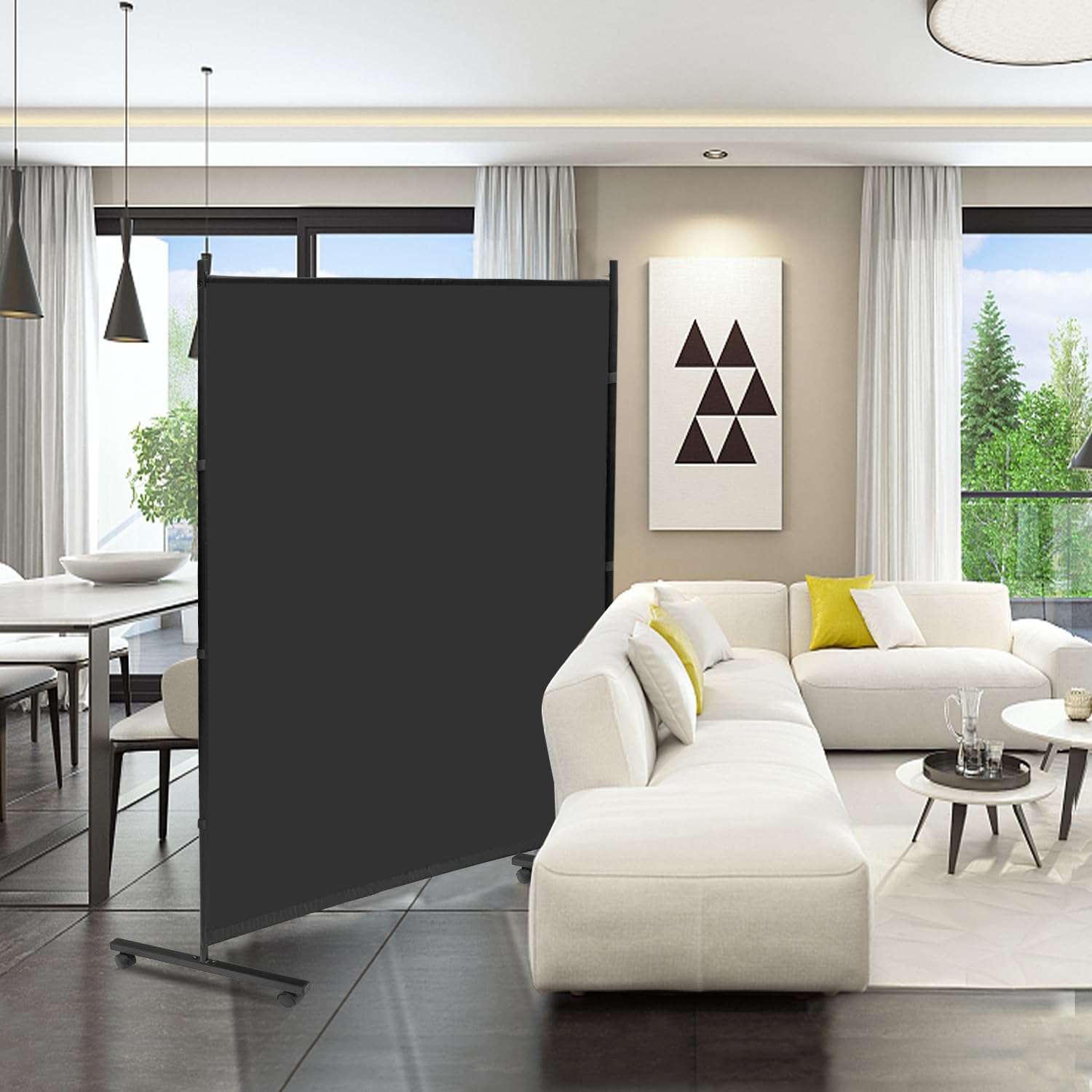 MAYOLIAH Large Single Panel Room Divider on Wheels, 71”W x 75”H Rolling Privacy Screen, Portable Wall Divider for Home Office Partition, Black