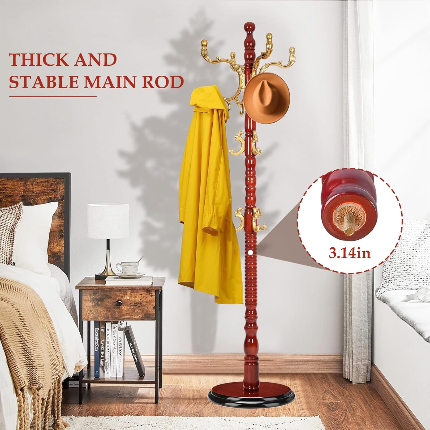 - 【A Stable Tree】 What good is a coat rack that falls over the moment you put a coat on the hook? Our coat tree made with 3.14" bold, solid wood pole and 13.4" diameter heavy-duty disc base, so you can tidy your room with confidence.