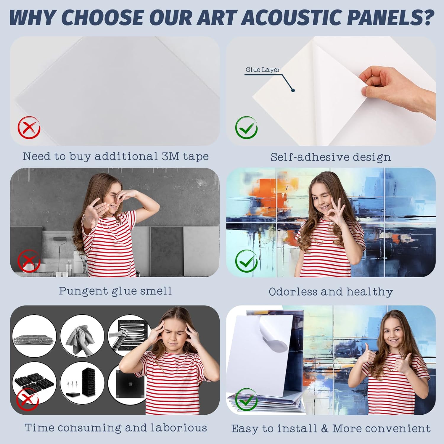 - EASY TO INSTALL: Please note that before installation, please clean the wall and keep the surface dry and dust-free, and you only need to peel off the label paper on the back and stick the sound panels to the desired position. If you want to better protect the wall, we recommend that you do not peel off the backing adhesive, but use 3M tape to stick.