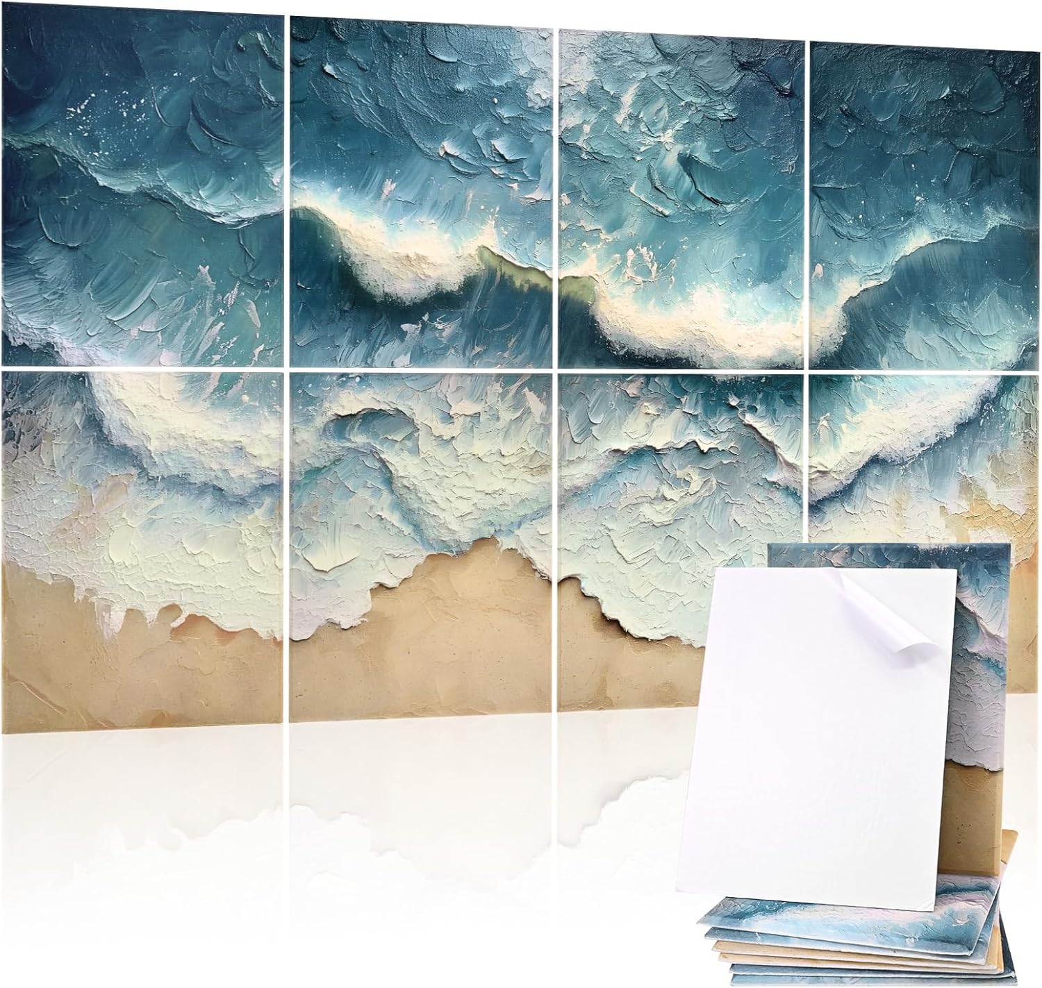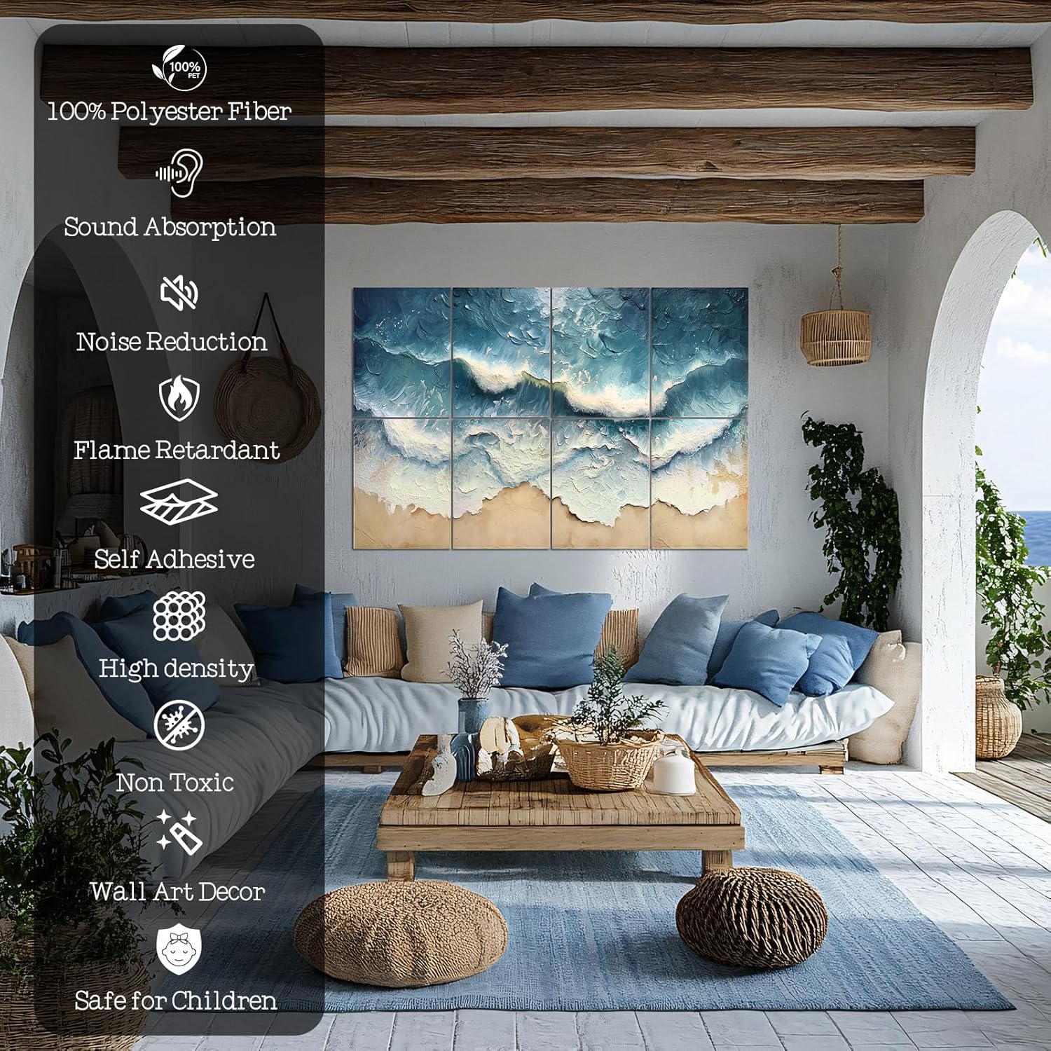 8 Pack Acoustic Panels, Soundproof Wall Panels, 48X32 Inches Sound Proof Panels for Walls, Sound Absorbing Wall Art Decorative, Sound Dampening Panels for Recording, Home Studio(Ocean Ode)