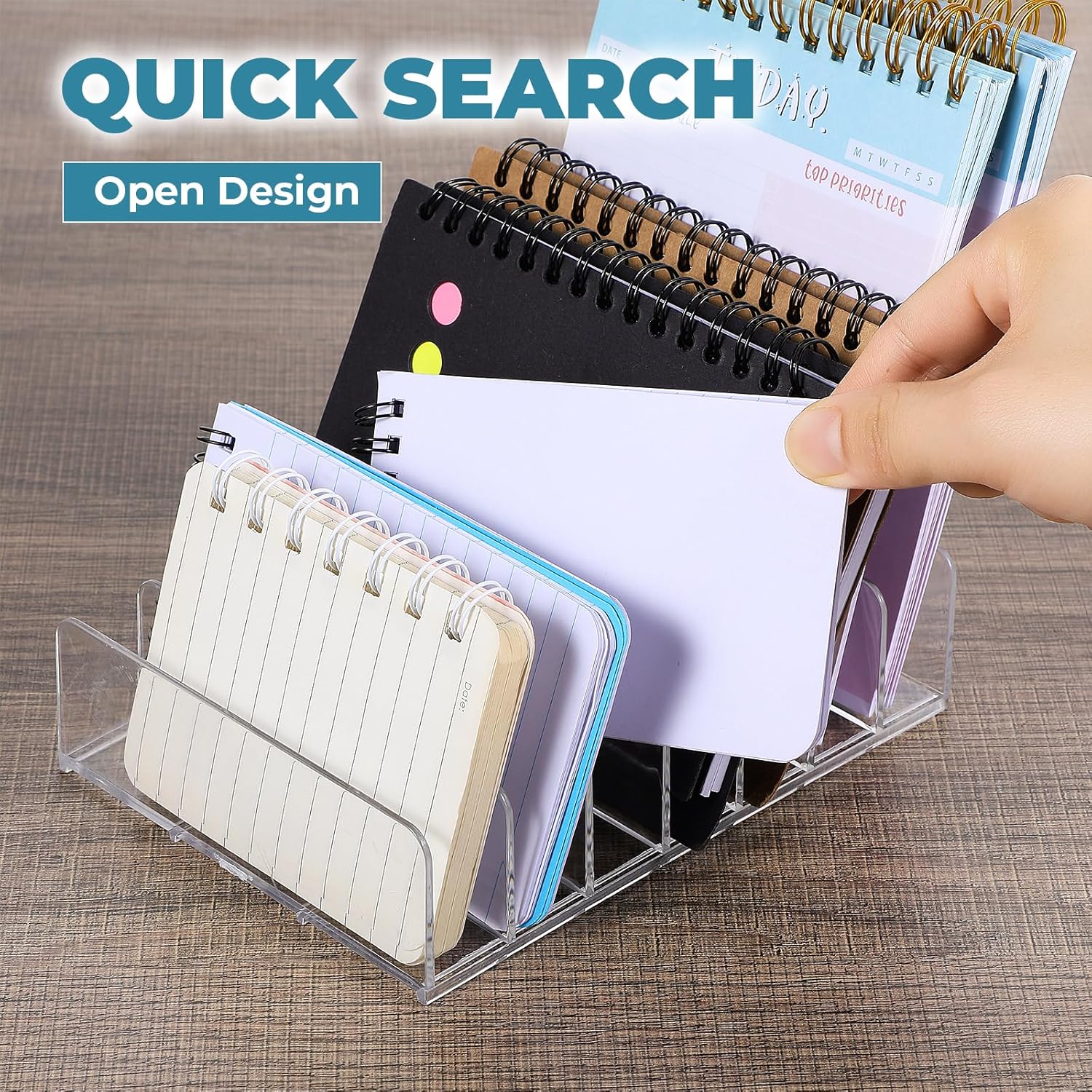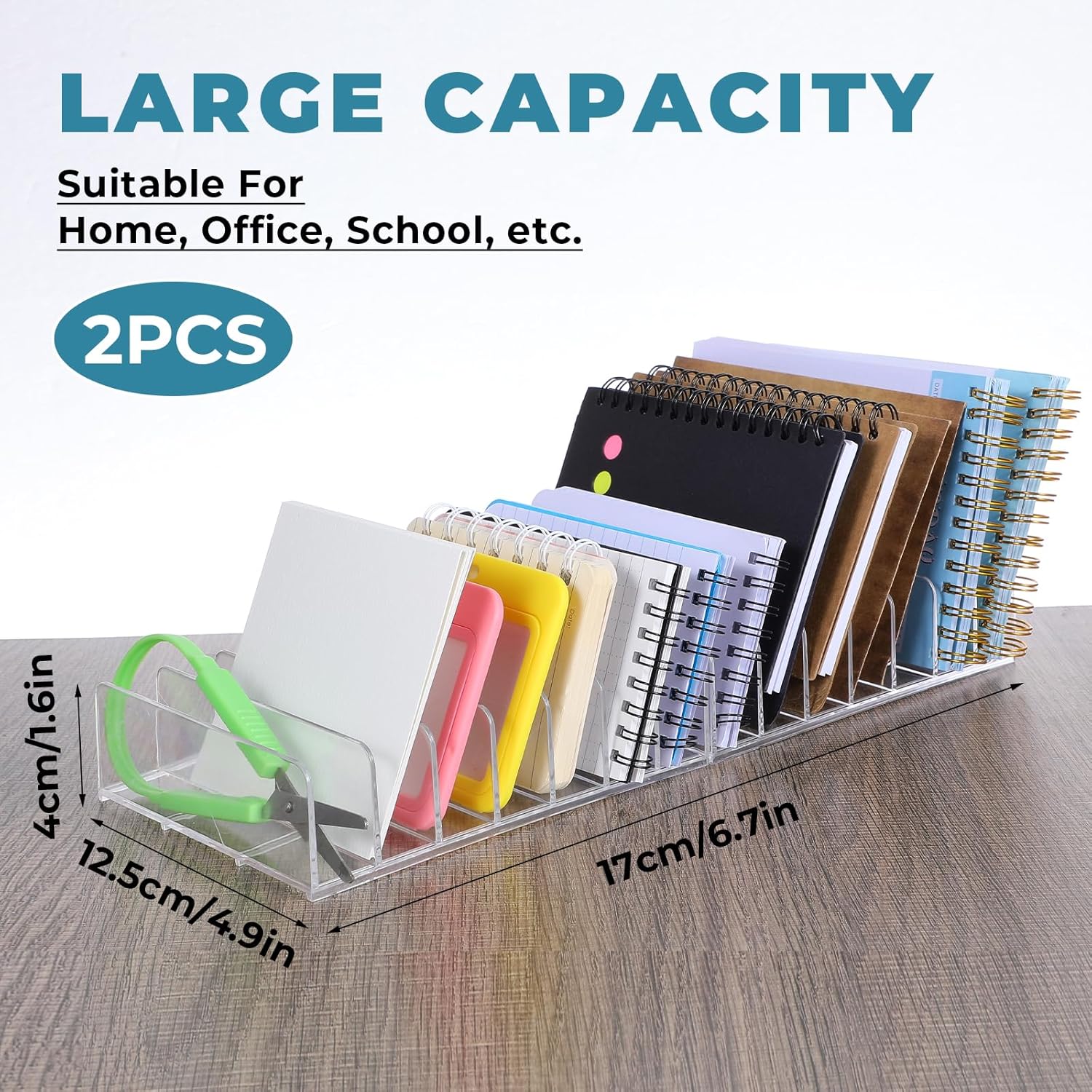 - ăSmall Size & Large Capacity Letter Folderă- Measuring 6.7"W x 4.9"D x 1.6"H, our acrylic file holder has 7 pcs spacious storage compartments, providing ample storage and sorting space for your mail and papers. It is the perfect desktop organizer for organizing files, magazines, documents, letters, books, binders, folders, mail, eyeshadow trays, etc.