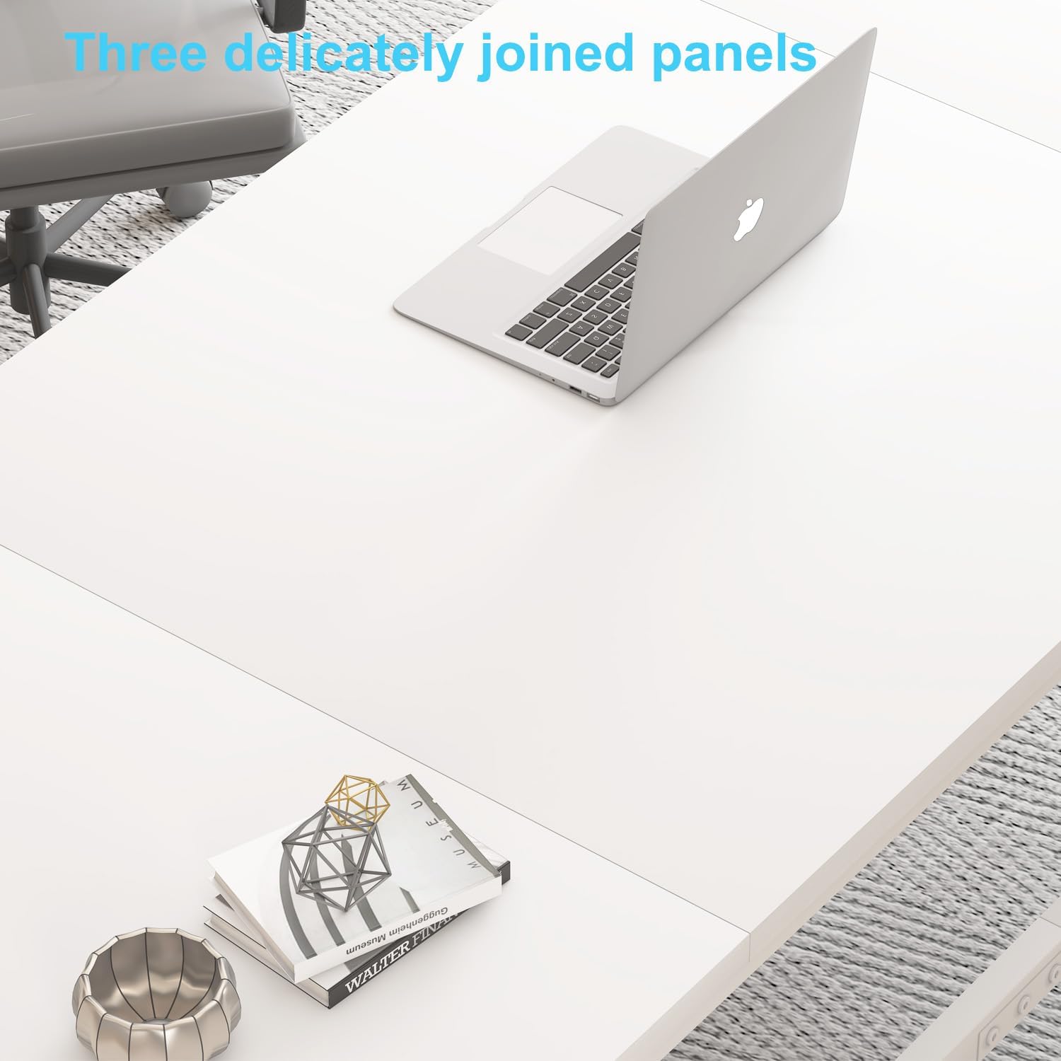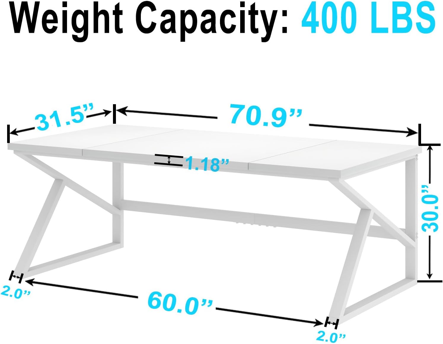 - 【Spacious Work Space & Leg Room】: Measuring 31.5"D x 70.8"W x 29.5"H overall, this long white desk offers ample space to accommodate multiple monitors, pc, laptop, printers, files, books, lamps and any other office essentials, ensuring you have everything you need within arm's reach for enhanced productivity. The desktop is crafted from three meticulously joined panels, creating a cool cross-grain effect. Featuring two K-shaped metal legs with an open structure, this large computer desk for home office provides ample leg room, promoting comfort during extended periods of use.