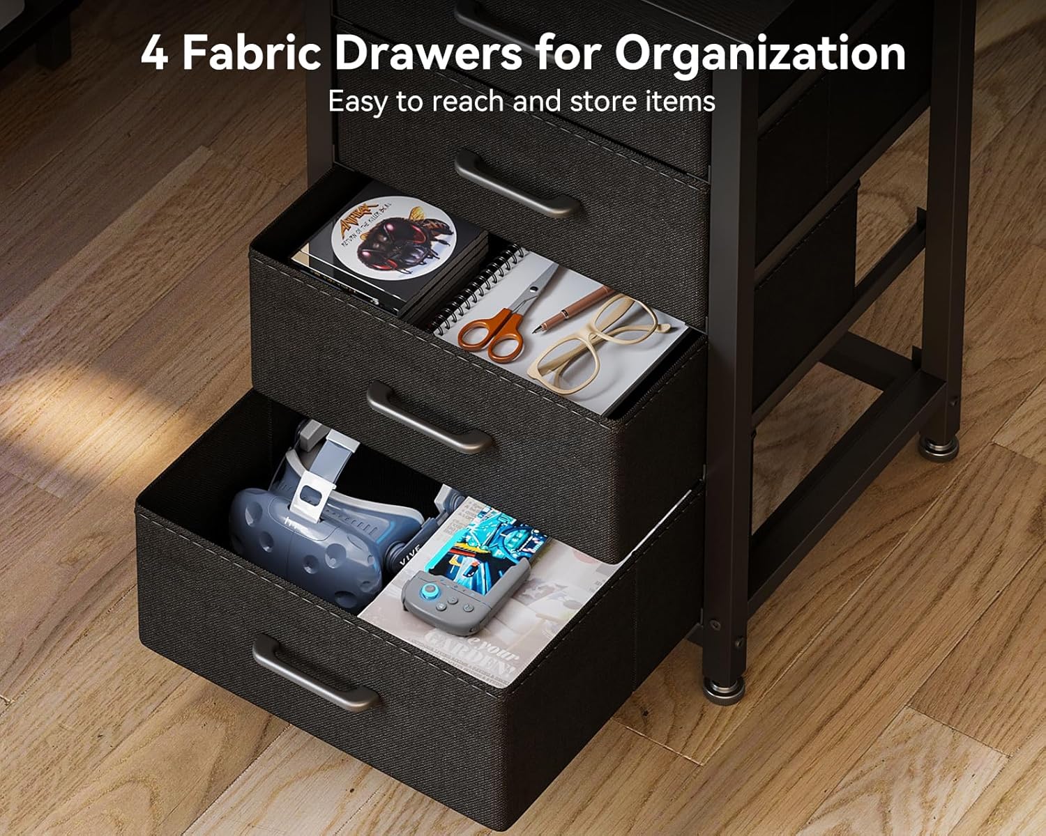 - 【Ample storage space】 Featuring four generously - sized drawers and two iron hooks, this l-shaped desk efficiently organizes a variety of items, including files, stationery, and personal belongings. This configuration optimizes organization, allowing you to keep your work essentials in order. Not only keeps your workspace tidy, but also provides a sizable surface area.
