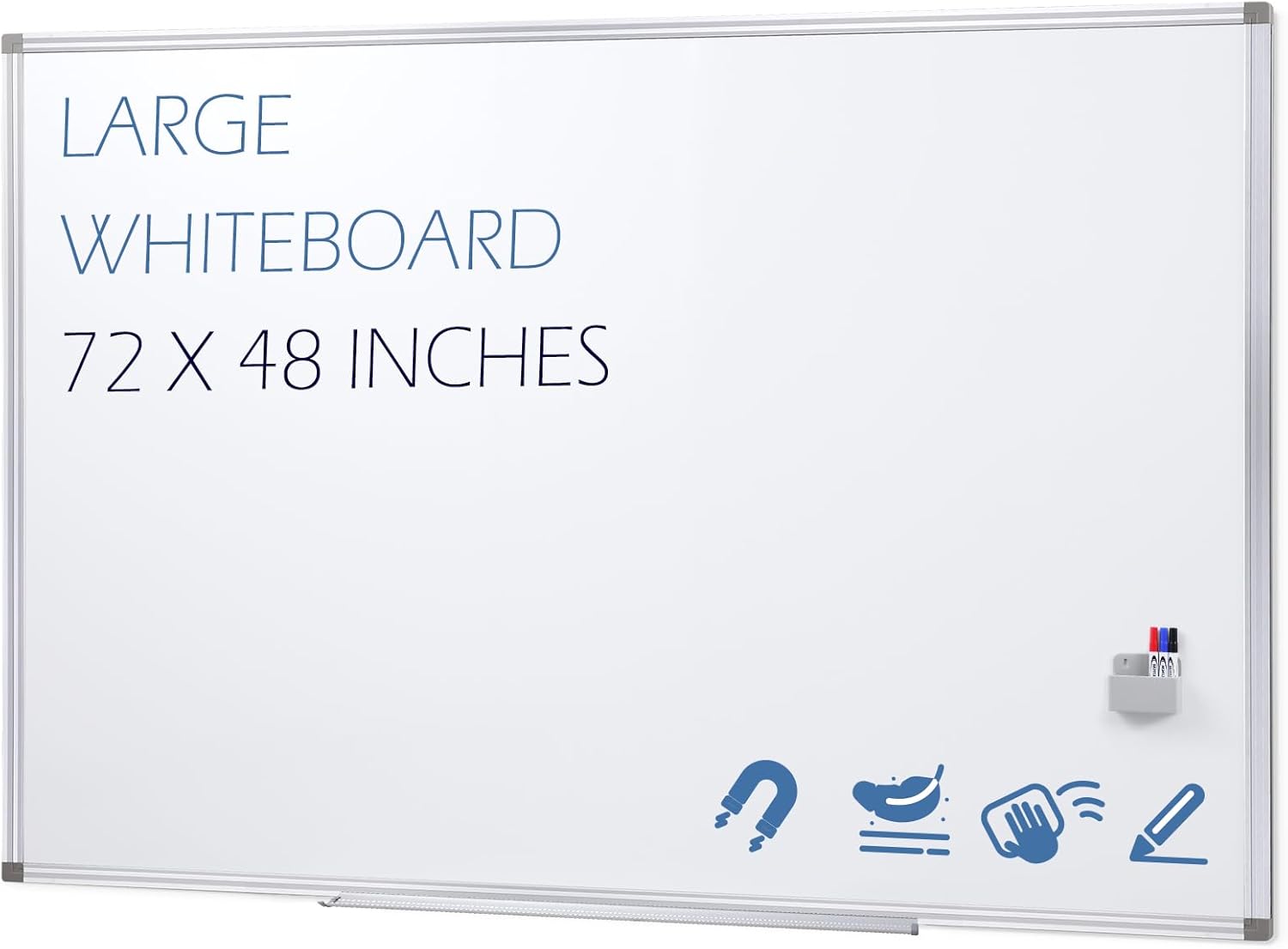 SWANCROWN 72" x 48" Dry Erase Board, Magnetic White Board for Wall, Large Marker Whiteboard with a Long Pen Tray for Class and Office