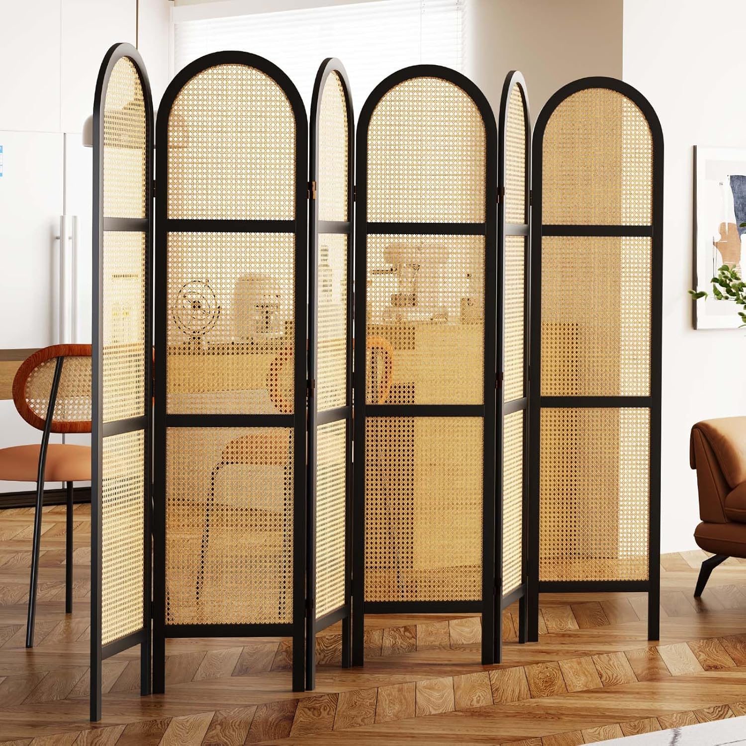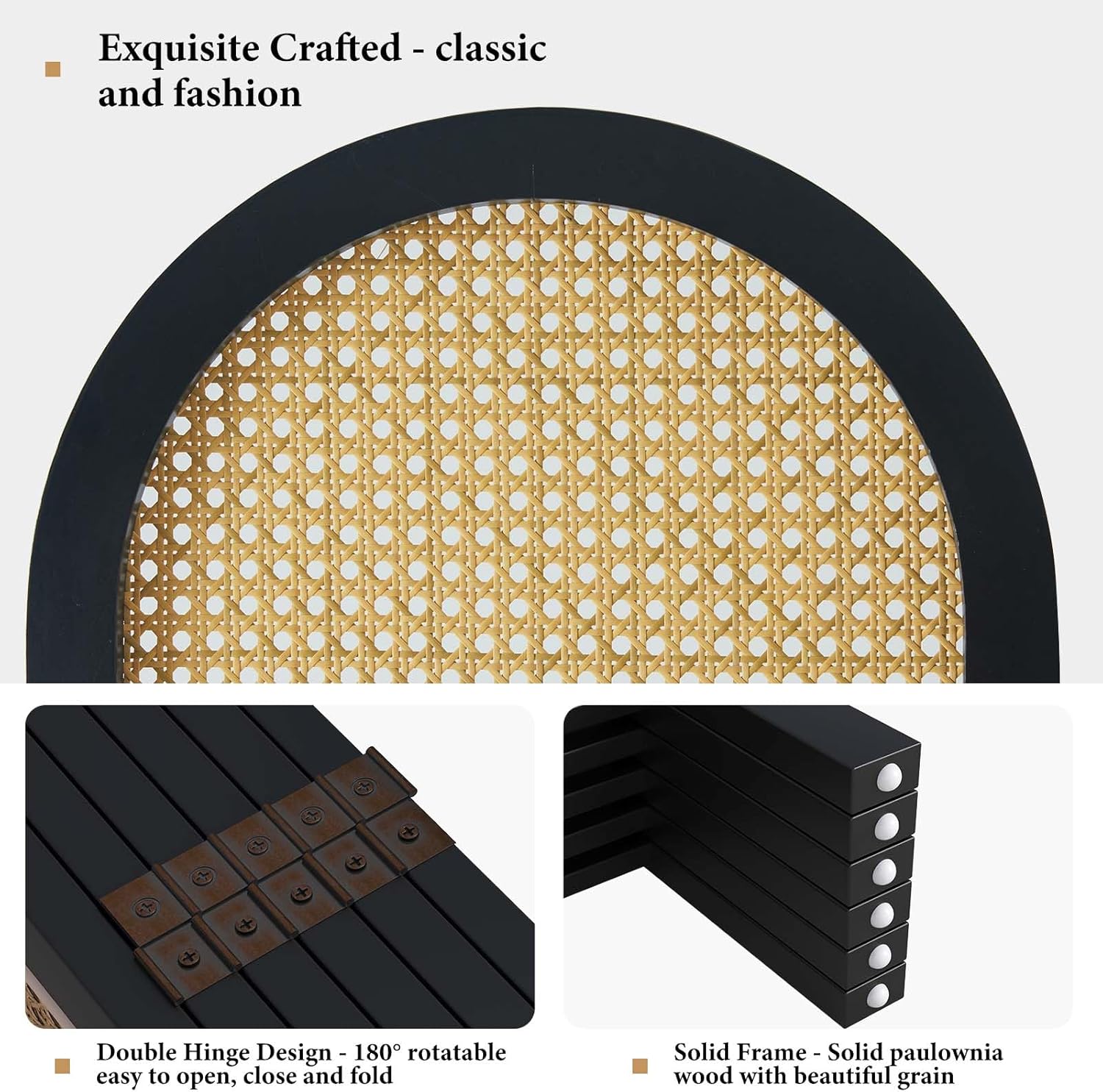 Room Dividers and Folding Privacy Screens, 5.6 Ft Double Hinged Rattan Partition Freestanding Wall Room Divider for Home - 6 Panels (Black)