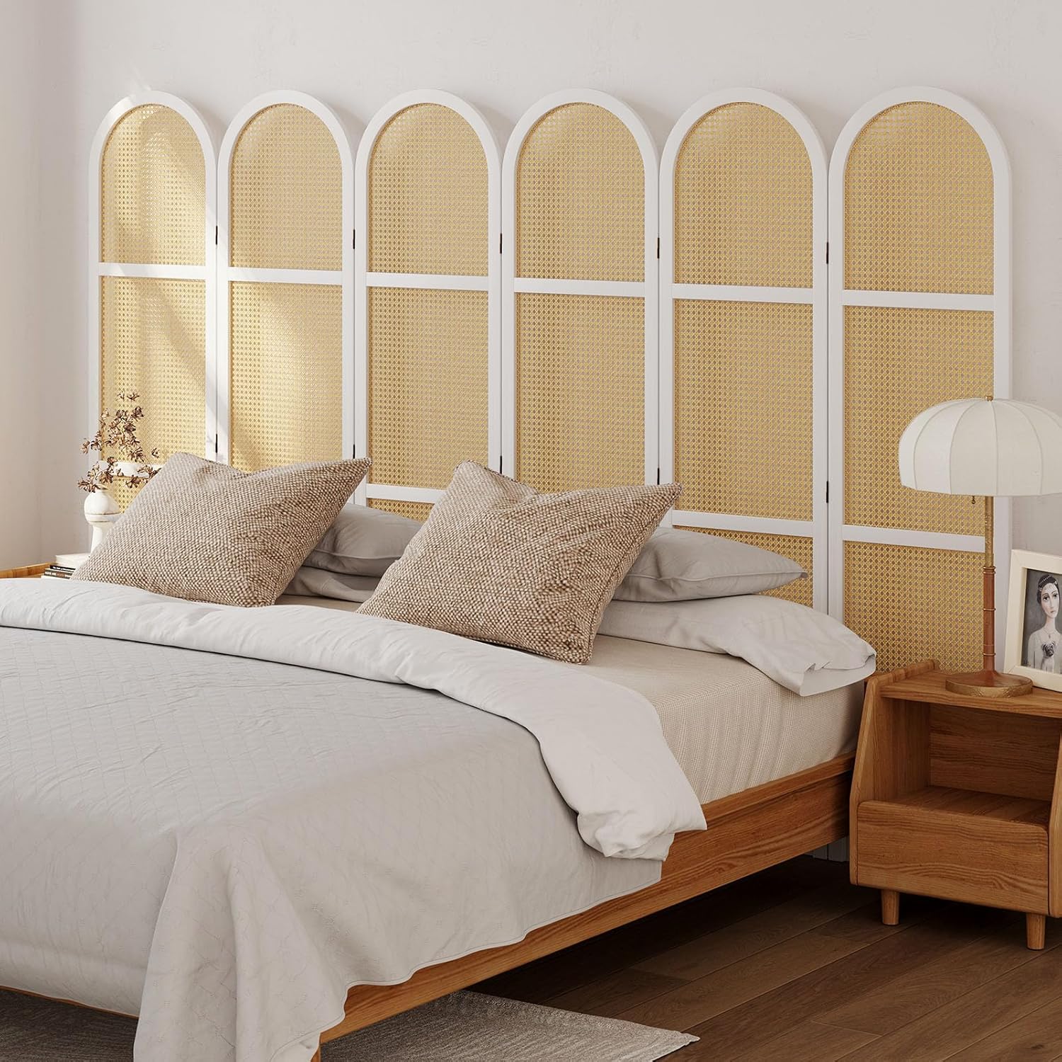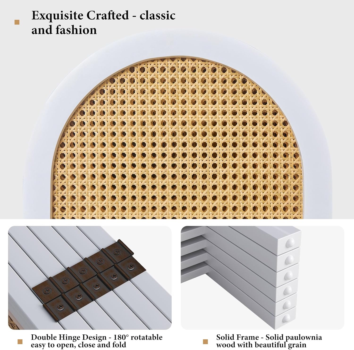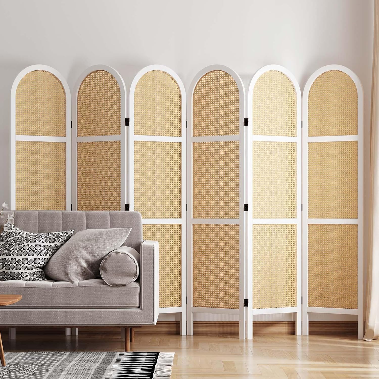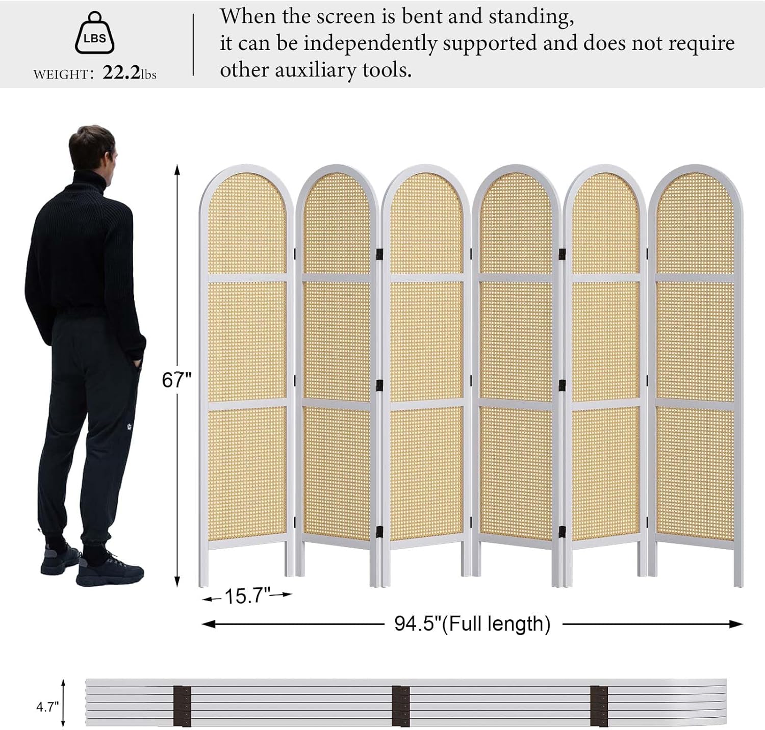 Room Dividers and Folding Privacy Screens, 5.6 Ft Double Hinged Rattan Partition Freestanding Wall Room Divider for Home - 6 Panels (White)
