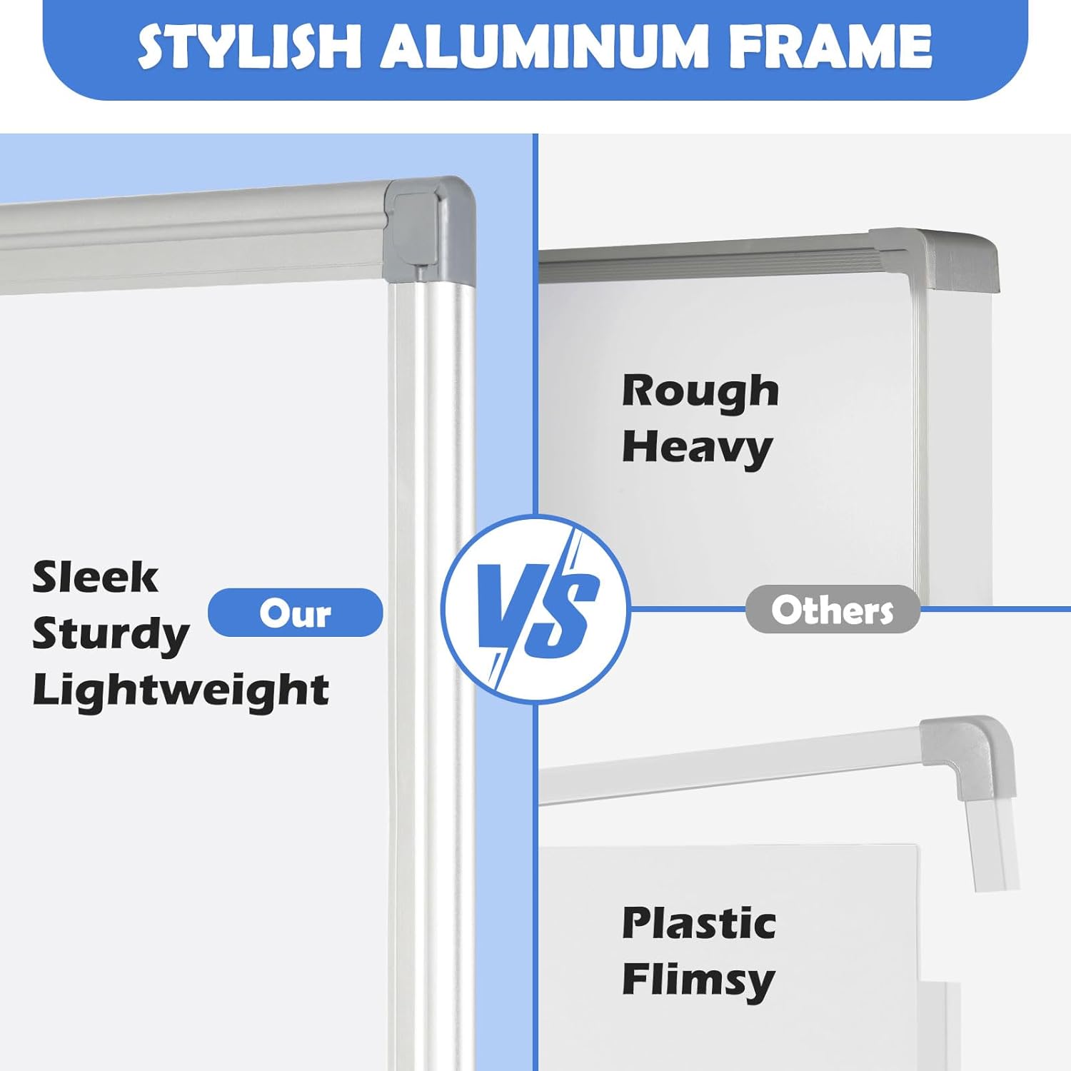 - 【Double-sided Whiteboard】- WALGLASS Small whiteboard made of smooth and scratch-resistant surface, easy to write on and dry erase without stain. Double sides magnetic whiteboard design can meet all your needs to post messages and pictures on the white board with magnets.