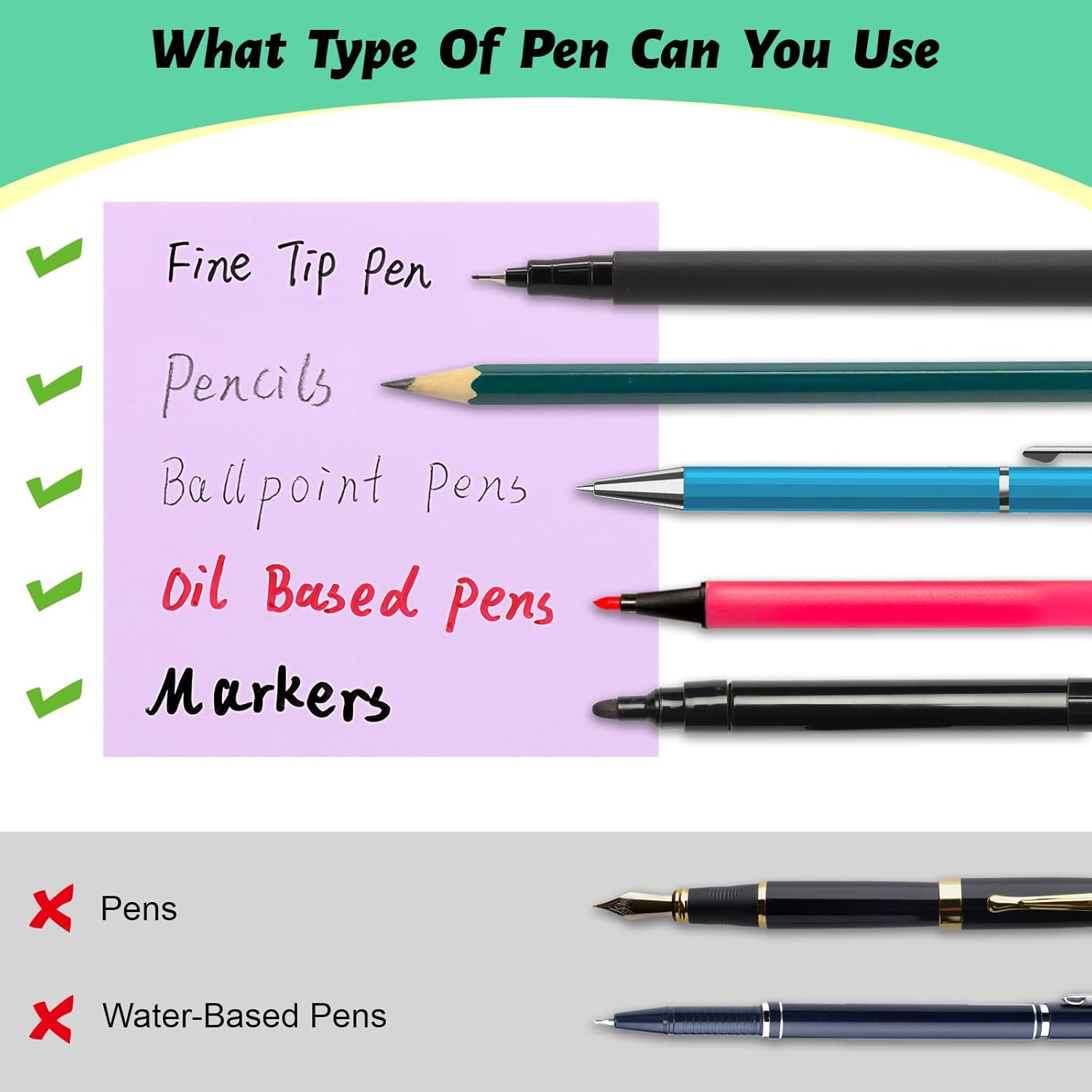- FRIENDLY HELPFUL HINTS: To enhance your user experience, we recommend using pencils, ballpoint pens, or oil-based markers. We do not recommend using water-based pens, gel pens, or common markers unless you are willing to wait for the handwriting to dry after using a water-based pen. Please avoid wiping the handwriting immediately