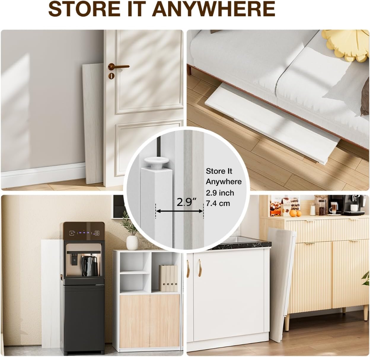 - πππ’π π£πππ§ ππ‘π πππ¦π¬ π§π’ π¦π§π’π₯π β When folded, this mini desk measures just 35.8" L x 15.7" W x 2.9" H. The small folding table design allows it to fit seamlessly behind doors, under beds, beside fridges, or in any other tight space, making it a great small computer desk for small spaces while keeping your room organized.