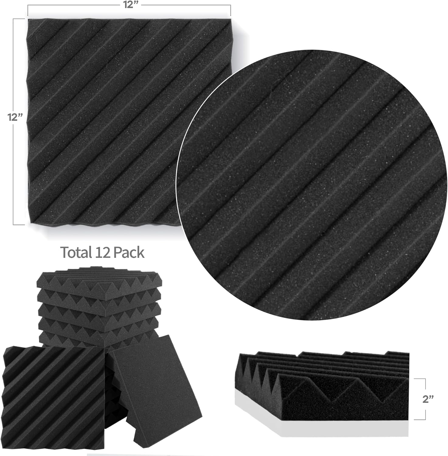 12 Pack Sound Proof Foam Panels for Walls, 12x12x2 Inches Slash Style Acoustic Panels for Home Studio Acoustic Treatment (Black)