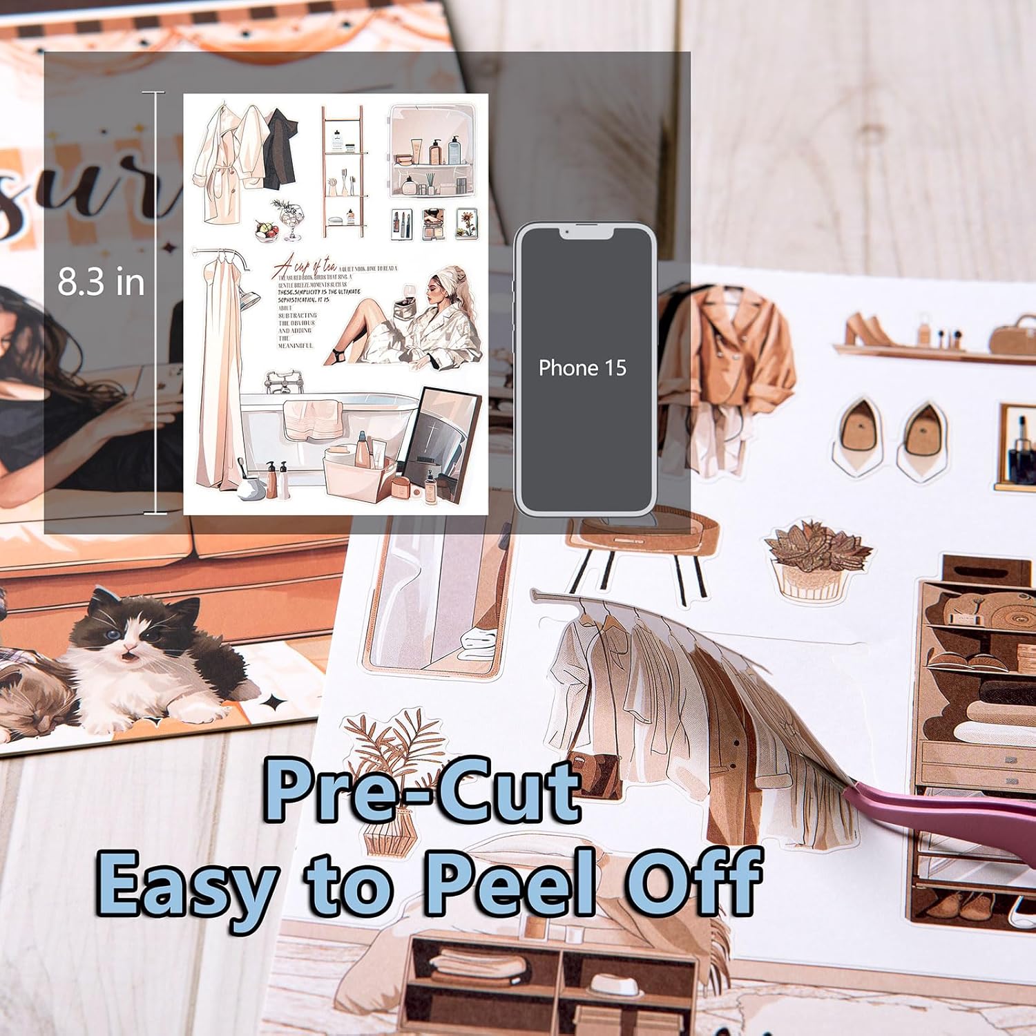 YagCu Scrapbooking Sticker Book, Scrapbook Stickers, Junk Journal Supplies, Pre-Cut Aesthetic Journaling for Women, Adults People Decorative Ephemera Bullet Planner DIY Arts