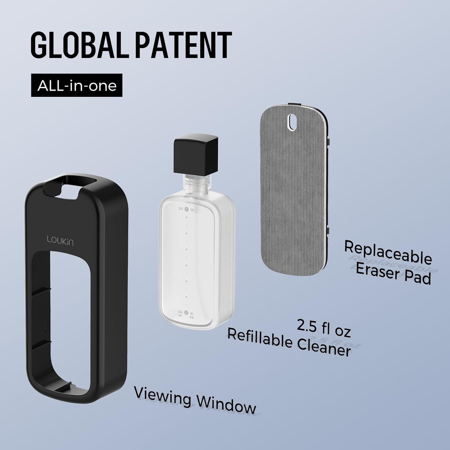 loukin Inventive All-in-One Dry Erase Eraser, Novel Replaceable Whiteboard Eraser with Built-in Cleaner, Unique Glass Board Erasers, Includes 2 Refill Pads, 1 Magnetic Holder, 2 Markers