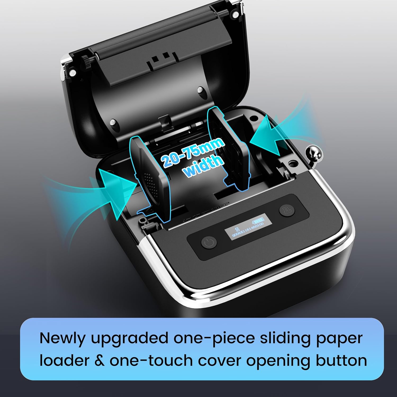 - Versatile Upgrade: The all-new 3-inch label maker from Phomemo supports a wider printing width of 20-75mm. Perfect for barcodes, QR codes, cables, addresses, names, mailing, jar labels, food labels, office, and home organization. Whether you're at home or running a small business, this compact sticker printer is the ultimate choice