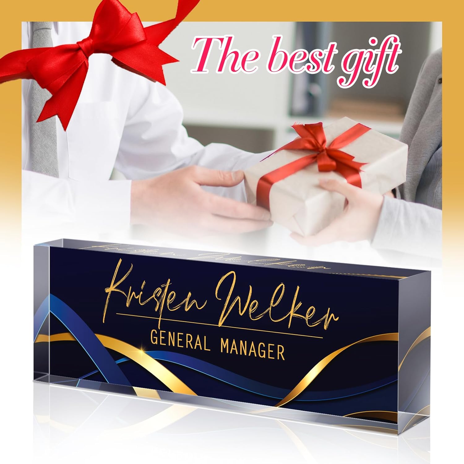 - 【Boss Day Appreciation Gift】 Customized desk name plates are a memorable and unique Boss Day gift. It is an ideal way to express appreciation to coworkers, managers, supervisors, bosses, etc. Perfect for promotions, employee recognition, Boss Day, Nurses Week, Teachers Day, and more. This thoughtful gift shows your care and appreciation and comes with a charming gift box and gift-wrapping service to make it even more special. Perfect as boss day gifts