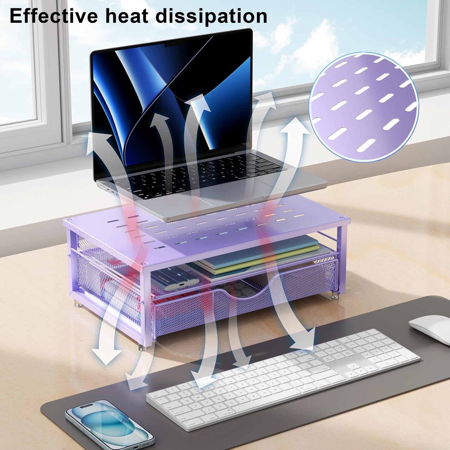 gianotter Computer Monitor Stand Riser, office organizer with Drawer, Office Organizers Storage for Classroom Office Supplies (Purple)