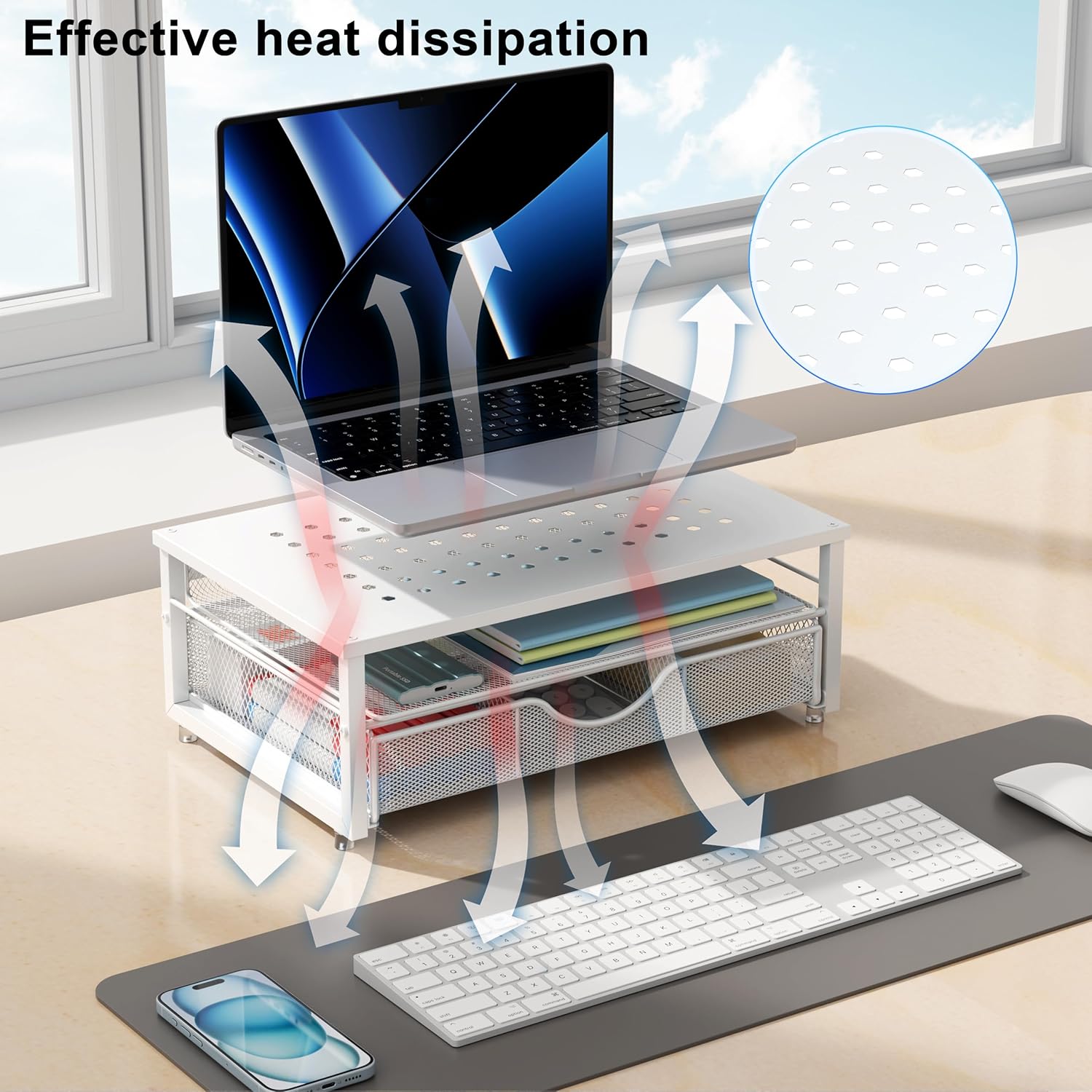 - 【Wide compatibility】: The office desk organizer is designed with ventilated panels to prevent equipment from overheating. Suitable for printer, computer, notebook.