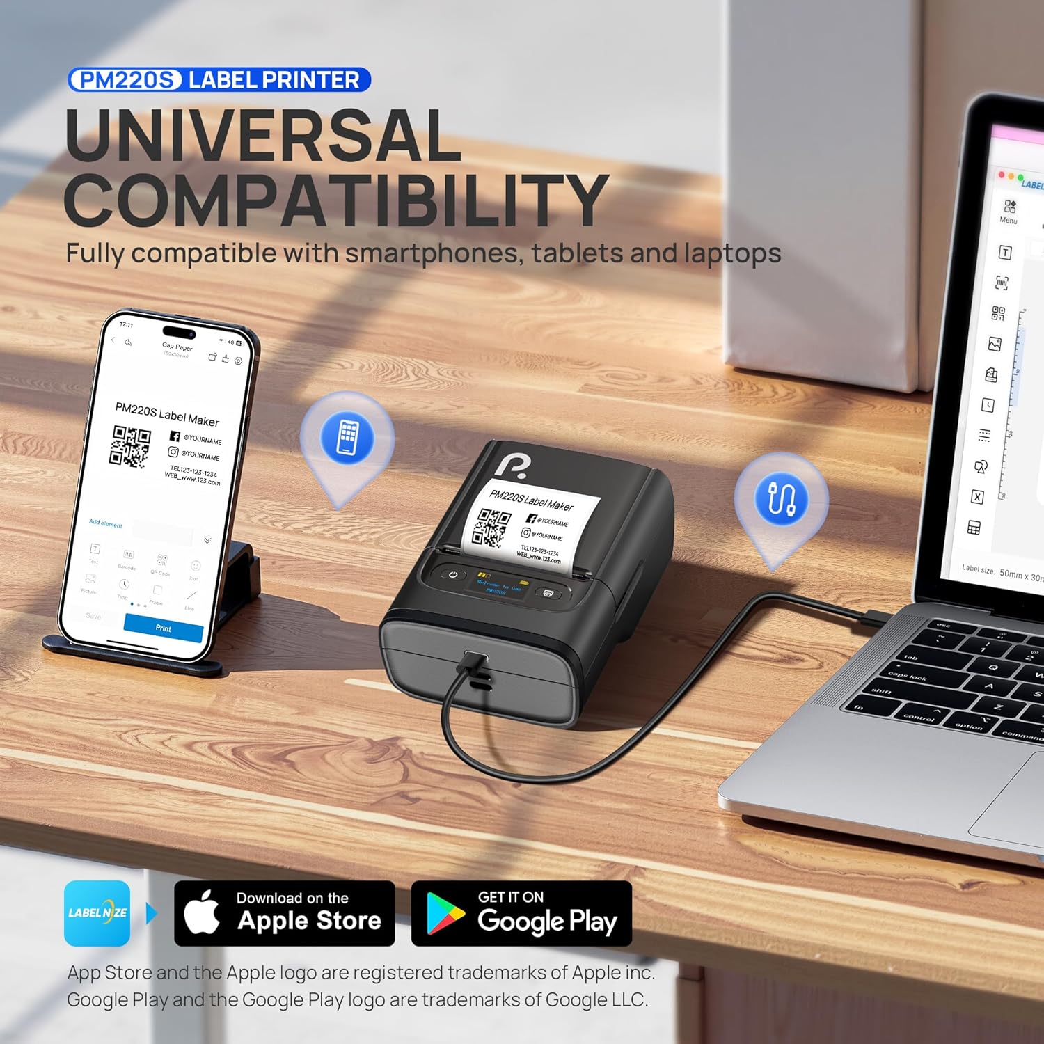 - 【Easy to Use】PM220S Bluetooth Label Maker compatible with iOS & Android and PC. For iOS & Android mobile phone, please download the "Labelnize" APP to Print via Bluethooth. For PC, you need to download the driver and APP, please visit "polono.com" to obtain the PM220S label printer computer driver and APP. Notice: Please DO NOT connect directly via Bluetooth for all devices